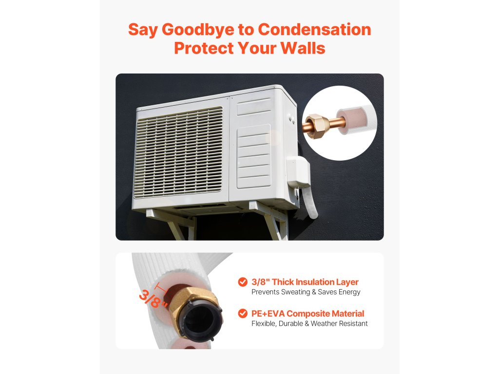 A készlet kompatibilis a mini-split légkondicionálókkal. A nagy tisztaságú csövek ellenállnak a kanyaroknál fellépő gyűrődéseknek és szivárgásoknak, így ideálisak az összetett szerelvényekhez, például garázsokban vagy műhelyekben. Szalaggal együtt szállítva - azonnal használatra kész a dobozból. Az egyszerű telepítéshez csak alapvető szerszámok szükségesek a beltéri és kültéri egységek csatlakoztatásához.