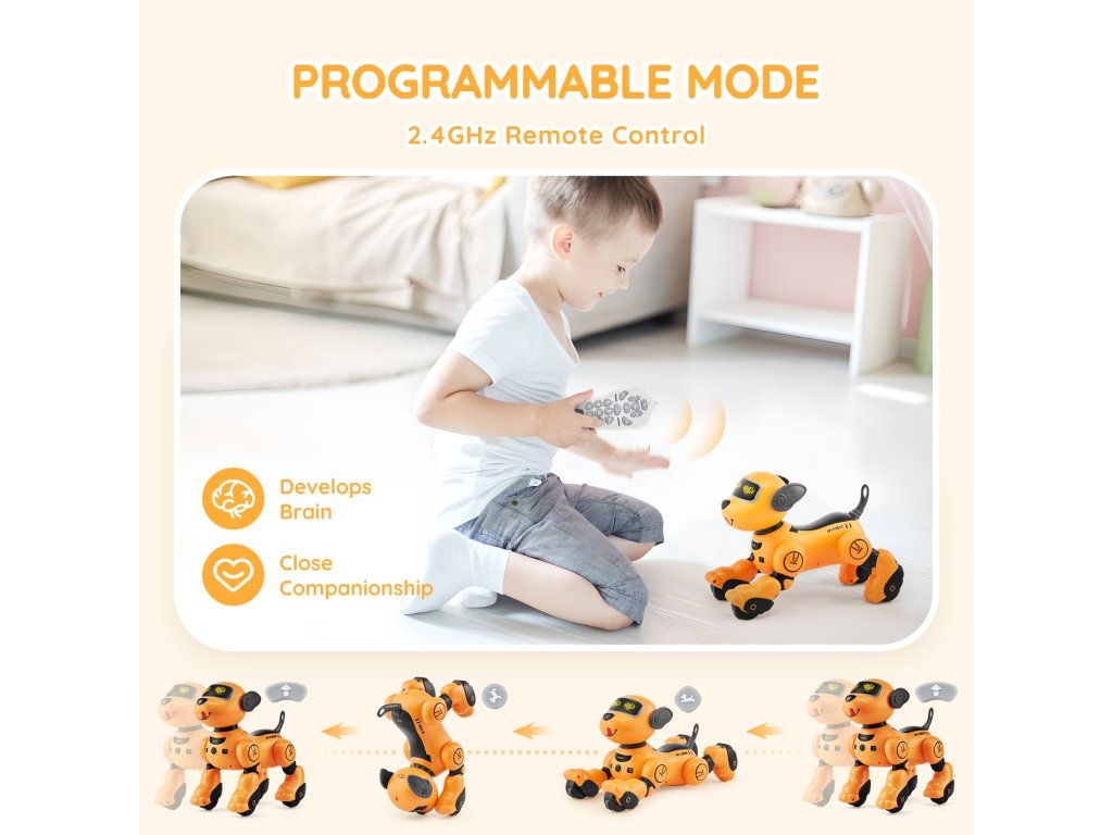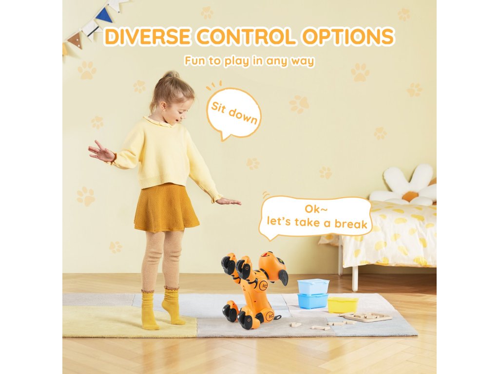 Ez a robotkutya nem csak egy játék - ez egy gondoskodó társ. Kivehető akkumulátorral tervezték, így kiküszöböli a töltés közbeni játék kockázatát, így a gyerekek biztonságosan élvezhetik a szórakozást.