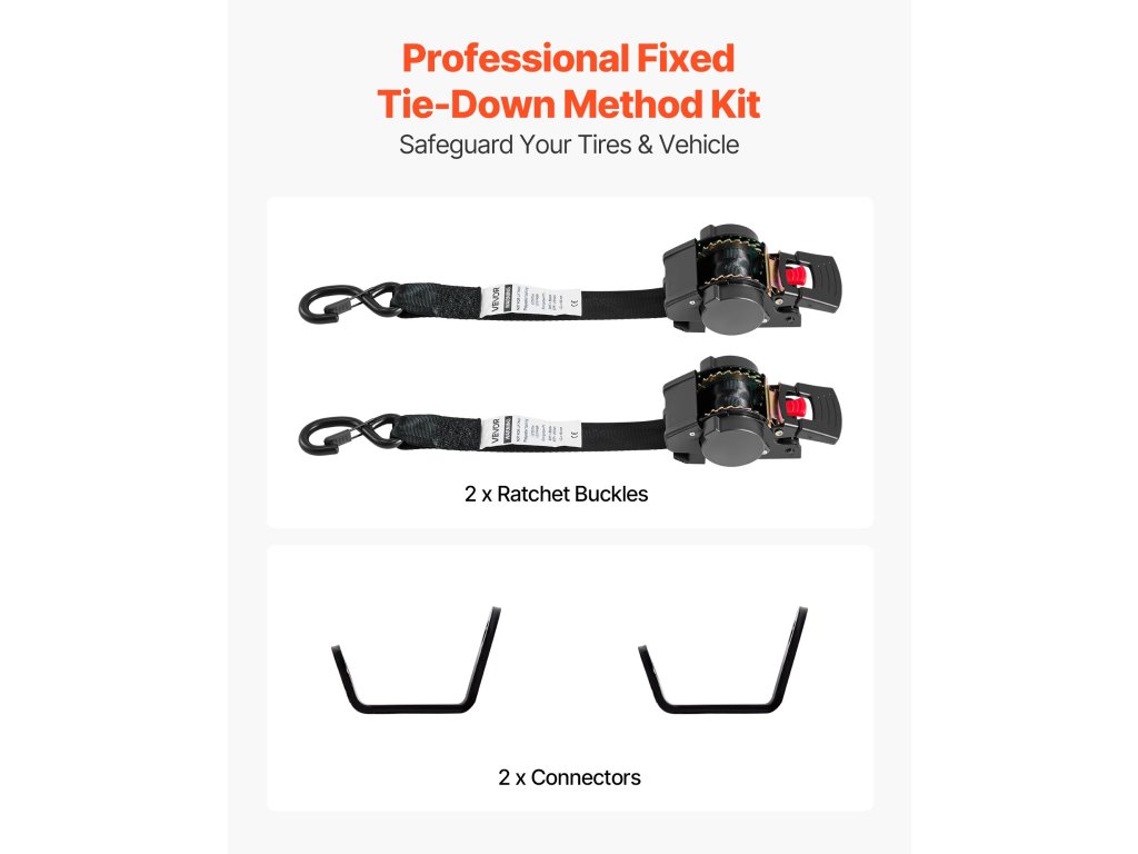 Menjen tovább a hagyományos kerékbilincseknél ezzel a kerékbilincs-készlettel. Úgy tervezték, hogy kiváló járműstabilitást érjen el, és rögzítse járművét anélkül, hogy megterhelné a gumiabroncsokat vagy a felfüggesztést. Minden egyes heveder akár 550 fontot/250 kg-ot is elbír, és stabilan tartja járművét szállítás vagy parkolás közben.