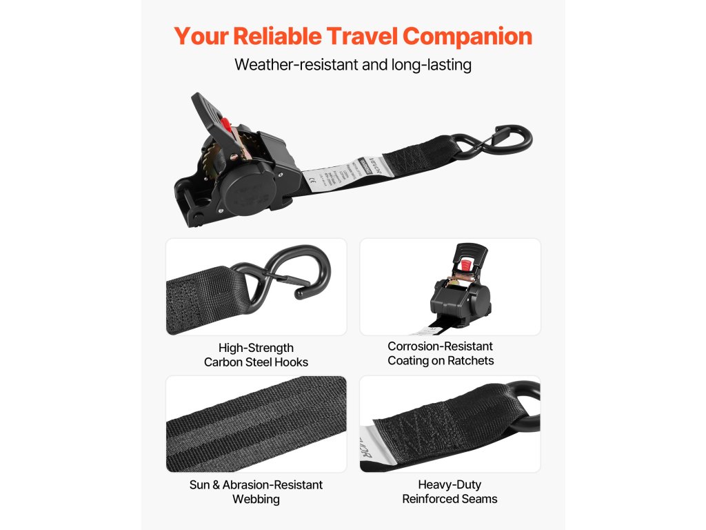 A pótkocsi rögzítő heveder szorosan szőtt, kopásálló hevederrel rendelkezik, amely nagy igénybevétel mellett is megőrzi integritását. Akár sivatagi hőséggel, akár nedves körülményekkel kell szembenéznie, ez a tartós anyag minden út során stabilitást és állandó megbízhatóságot biztosít.