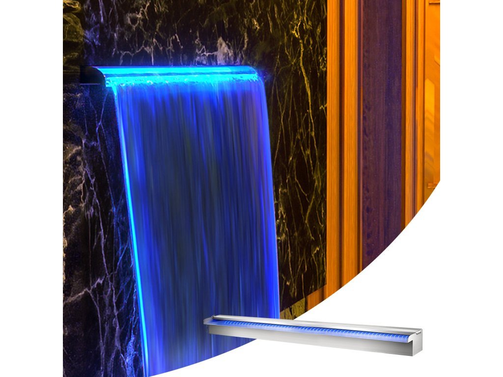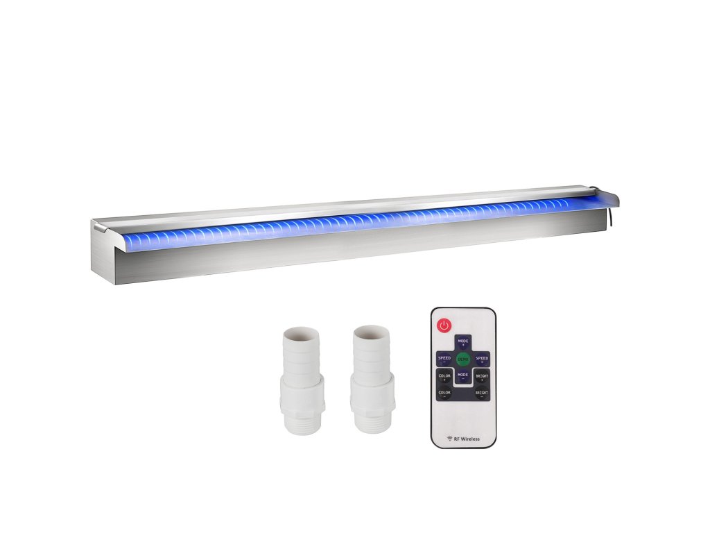 Rozsdamentes acél medence vízesés 120 × 11,5 × 8 cm LED-del és távirányítóval
