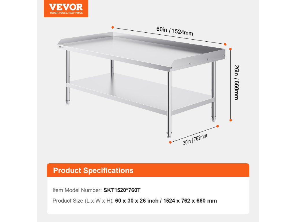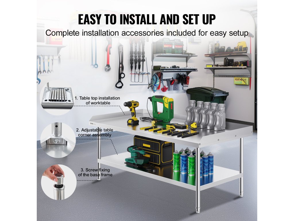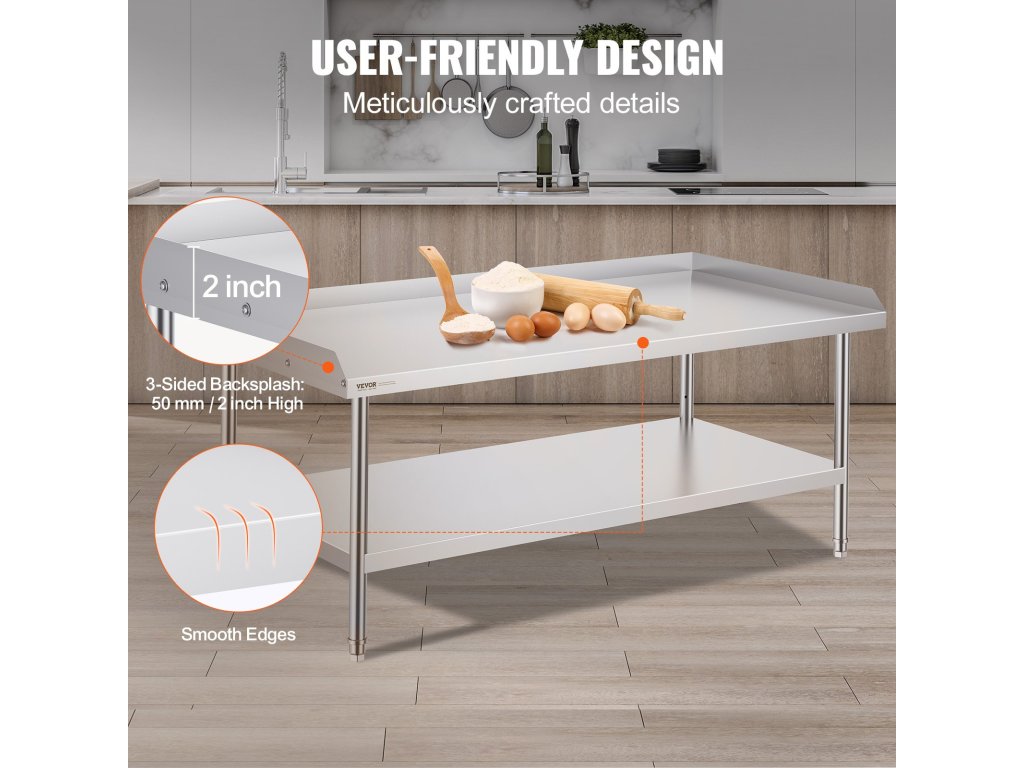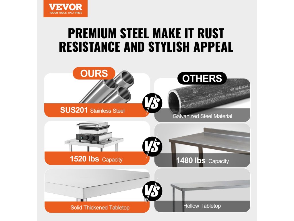 VEVOR rozsdamentes acél munkapadok stílusos kialakítással
