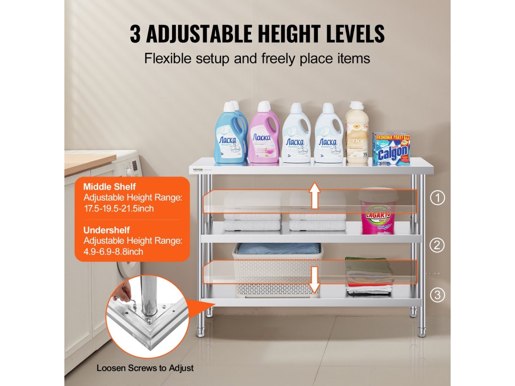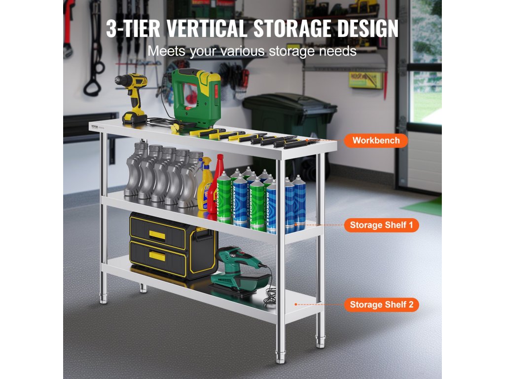 VEVOR rozsdamentes acél munkapadok stílusos kialakítással