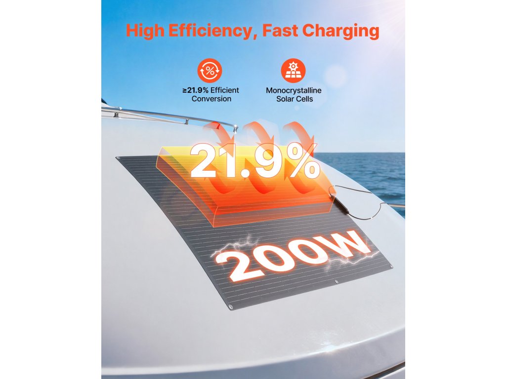 Ez a 200 W-os félig hajlékony monokristályos napelem ≥21,9%-os magas konverziós hatékonyságot biztosít, több napfényt alakít át stabil energiává. Könnyű, rugalmas kialakítása alkalmazkodik lakóautókhoz, háztetőkhöz, hajókhoz és más ívelt felületekhez, rugalmas megoldást kínálva a hálózaton kívüli alkalmazásokhoz.