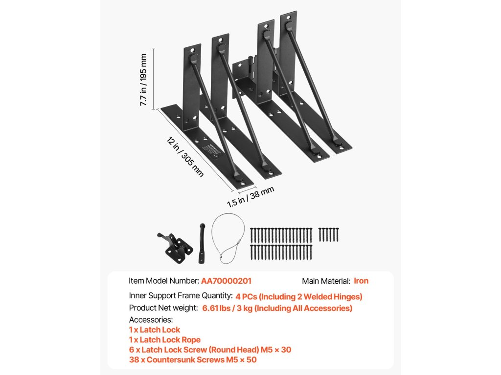 Kompatibilis a kaputípusok 99%-ával, beleértve a fészerkapukat, feljárókapukat, állatkapukat, faablakokat, teraszajtókat, medencekapukat, pajtaajtókat és még sok más kaput. Ez a kapukeret hardverkészlet 2 x 4 hüvelykes és nagyobb fa méretekhez illeszkedik, sokoldalú megoldást nyújtva a különböző kapu telepítésekhez.