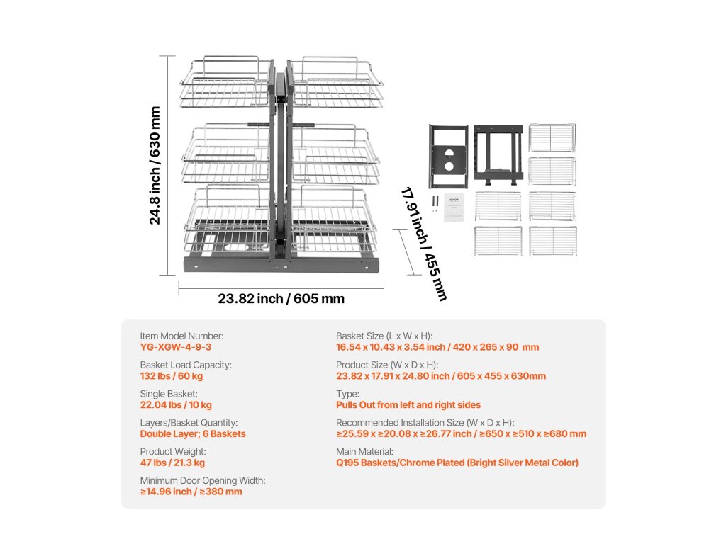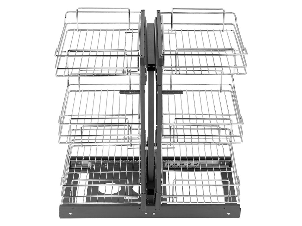 Ez a kihúzható kosár 6 nagy kapacitású kosárral van felszerelve, amelyek a hatékony kategorizálásnak köszönhetően lehetővé teszik a tárgyak gyors előkeresését, teljesen megoldva a korlátozott konyhai hely és a rendetlenség problémáját.