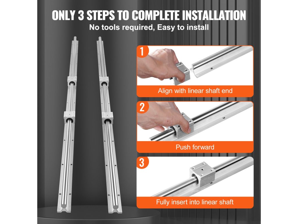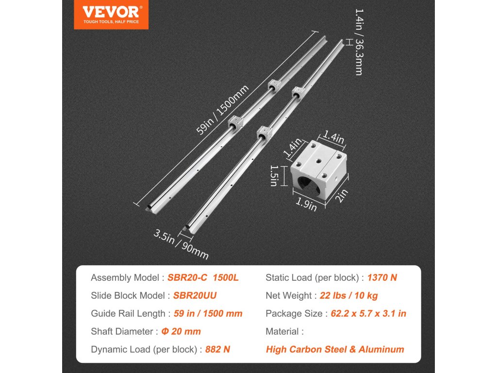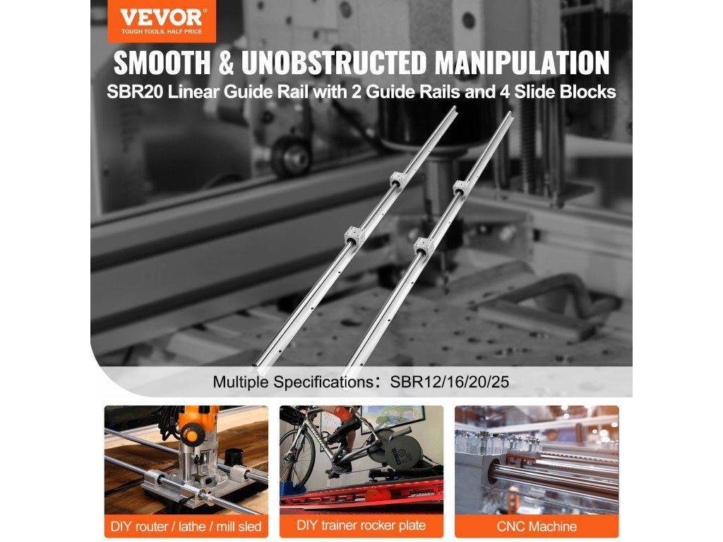 A kiváló minőségű VEVOR SBR lineáris vezetősín 2 vezetősínt és 4 csúszóblokkot tartalmaz. A tartós alumínium vezetősínek pontos átmérővel és furattávolsággal rendelkeznek, míg az SBR csúszóblokkok golyóscsapágyakat használnak a sima és akadozásmentes mozgás érdekében.