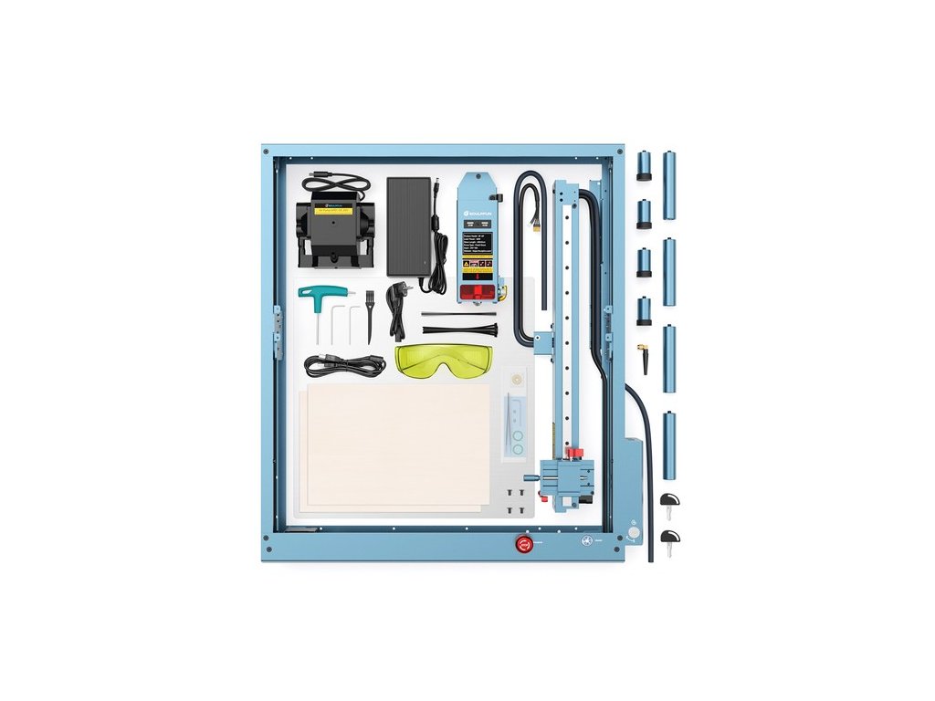 A Sculpfun SF-A9 további fém tartóoszlopokkal rendelkezik, amelyekkel beállítható a gép magassága, hogy megkönnyítse a magasabb tárgyak gravírozását, és megfeleljen a különböző munkaigényeknek.