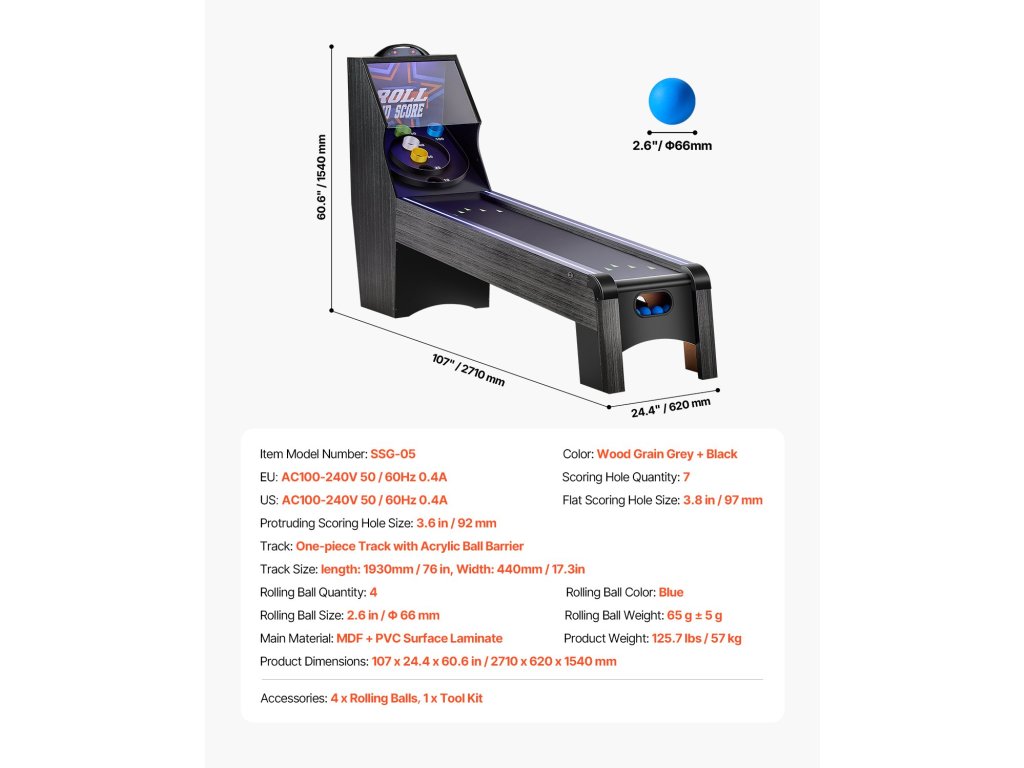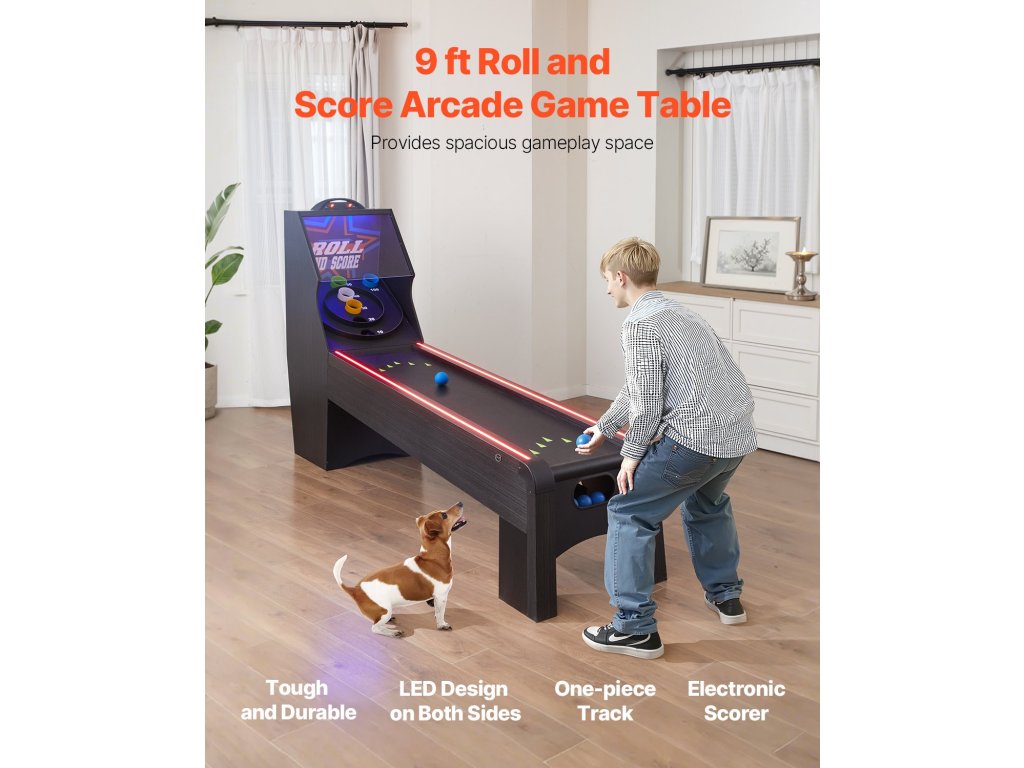 Skeeball asztal 9' LED számlálóval, hanggal, automatikus visszatéréssel, 4 labdával