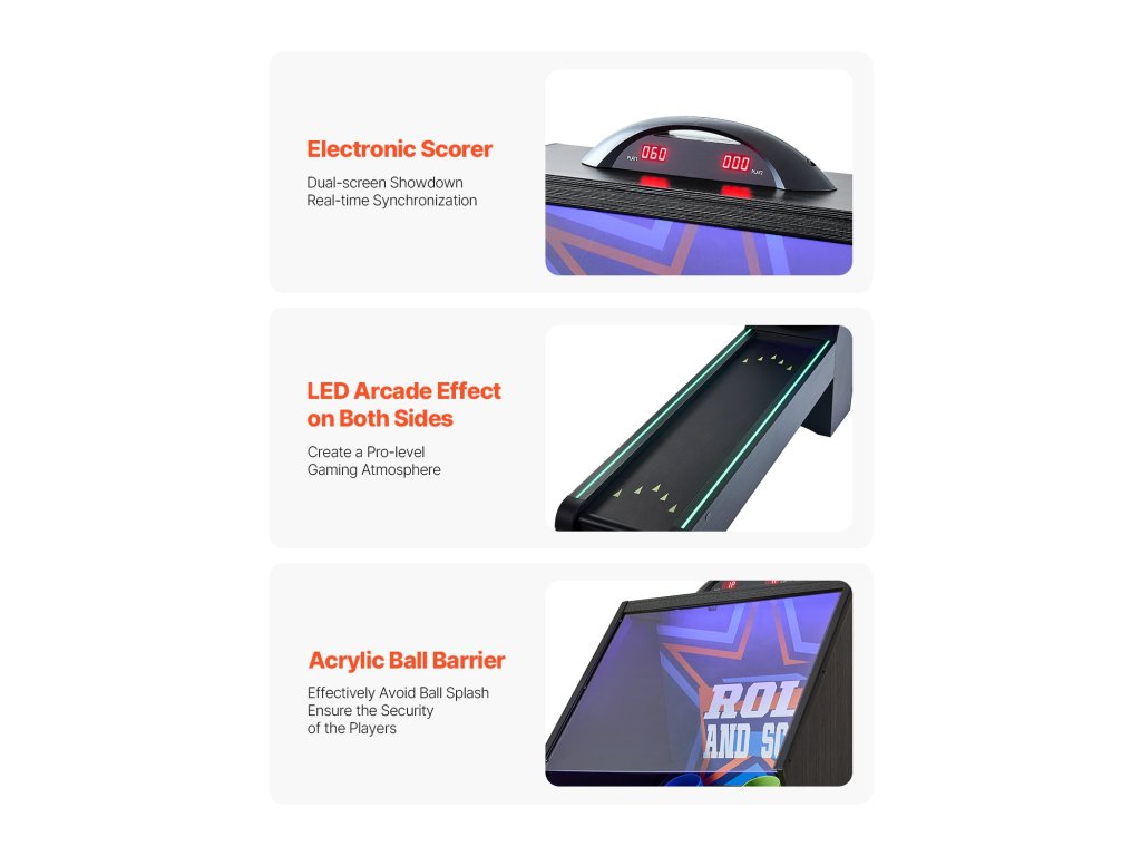 Ez a tágas, 9 láb hosszú játéktermi játékasztal elhozza a játéktermi játék izgalmát az otthonába. Élvezze a többféle játékmódot, amelyeket minden típusú játékos számára terveztek, míg a tartós konstrukció végtelen szórakozást biztosít a játékminőség és a stabilitás feláldozása nélkül.