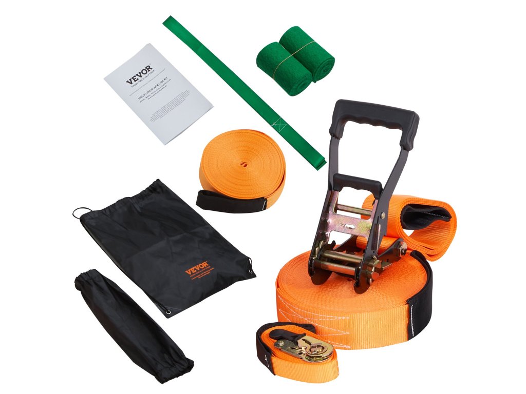| Felső slackline (LxW) | 60 láb x 1 hüvelyk / 18,3 m x 2,5 cm |