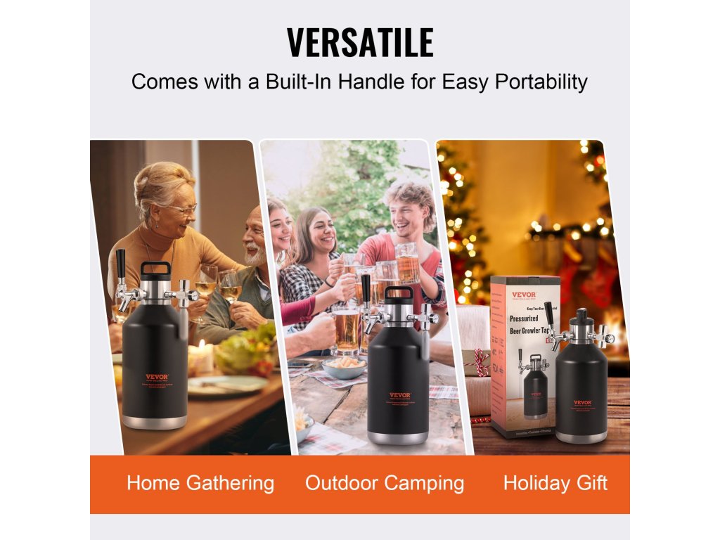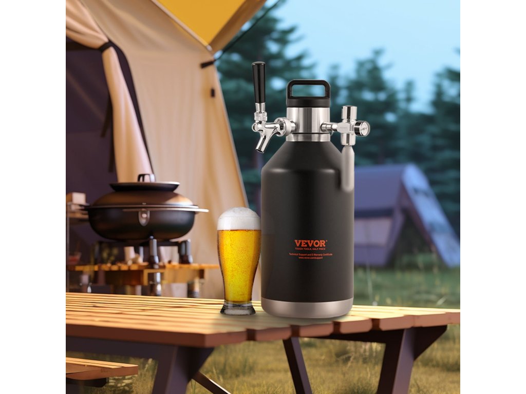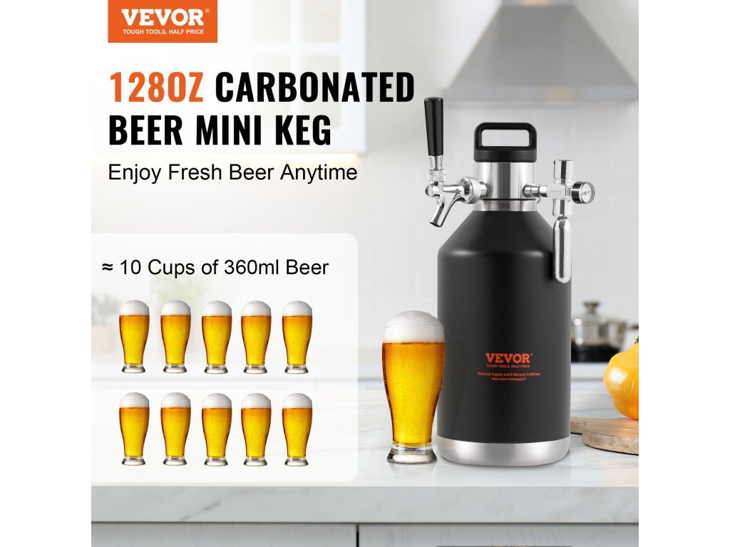 A 8,3 x 8,3 x 15,7 hüvelyk méretű, 128 uncia kapacitású mini szénsavas söröshordó kényelmes hordozófogantyúval rendelkezik, így alkalmas otthoni összejövetelekre vagy kempingezésre a szabadban.