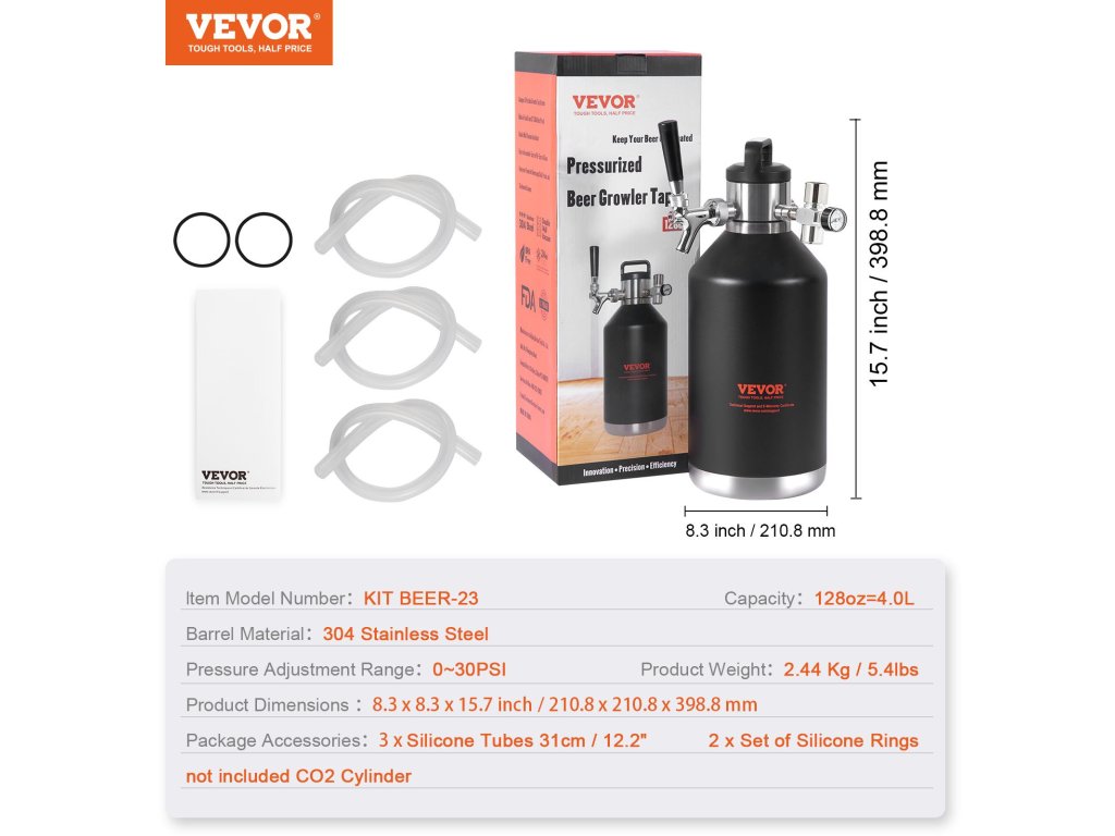 Söradagoló rendszer 128Oz 4L, 304 rozsdamentes acél, CO2 szabályozóval, csappal