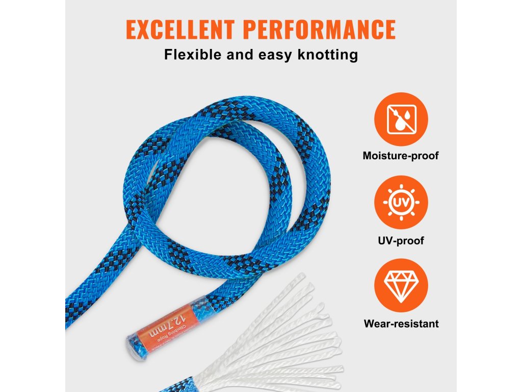 A kiváló nedvesség- és UV-állósággal rendelkező mászókötél szerkezete emellett elég rugalmas ahhoz, hogy a kezelő könnyen csomót kössön, és a csomók nem törnek el könnyen, ami biztonságosabbá teszi.