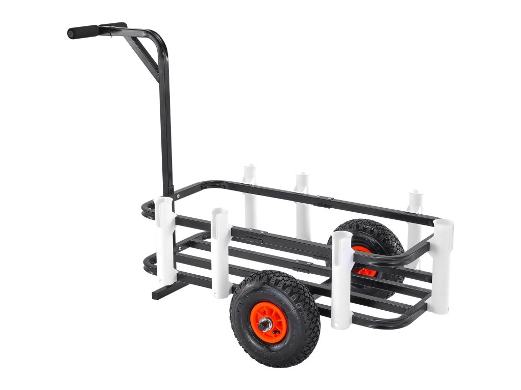 Képzelje el ezt: egy masszív acélvázzal ellátott horgászkocsi, amely 11 hüvelykes felfújható gumikerekeken simán mozog. A 34 x 14,5 x 7 hüvelyk méretű, 7 bottartóval akár 200 font súly szállítására is alkalmas, tökéletes partner a horgászkalandokhoz.