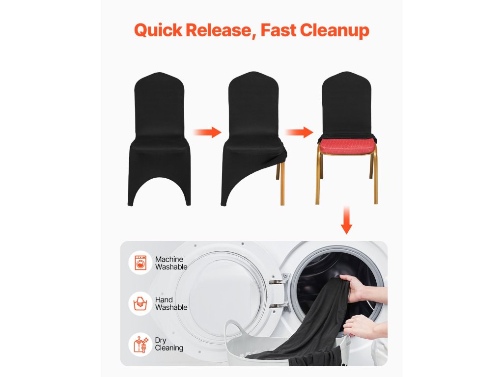 Egyszerűen feszítse őket a székek fölé, és rögzítse a négy lábat az összeszerelés befejezéséhez. Időt és ápolási költségeket takarít meg, nincs szükség vasalásra. A székhuzatok kézzel moshatók, mosógépben moshatók vagy szárazon tisztíthatók enyhe mosószerrel.