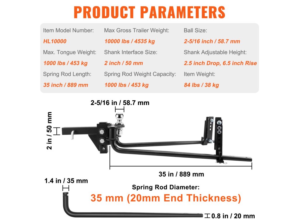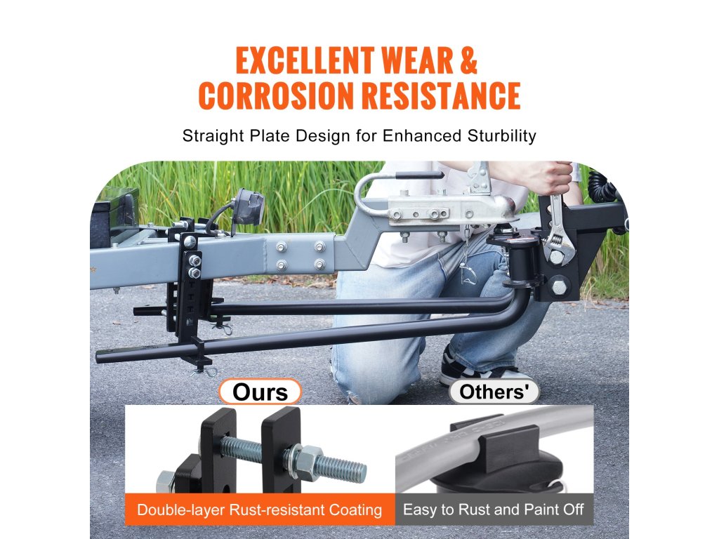 Ez a kiváló minőségű, megerősített acélból készült pótkocsivontató stabil és tartós. A felületet beégetett zománccal kezelték a rozsdásodás megelőzése érdekében, és simább vontatást biztosít a kellemes utazás érdekében.