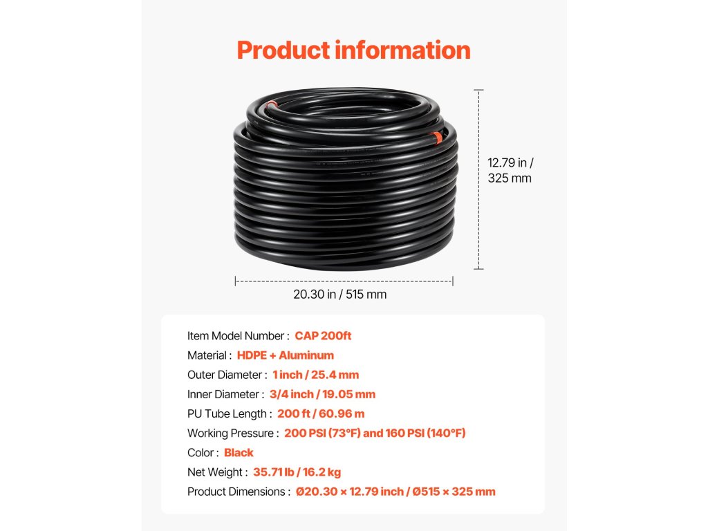 Sűrített levegős csőkészlet 200FT×3/4" hdpe alumínium, fekete