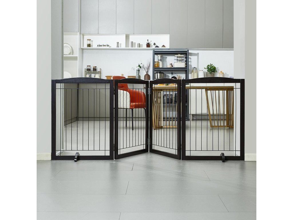 Szabadon Álló Kutyakapu 80 cm × 247 cm, 4 Panel, Bővíthető, Barna