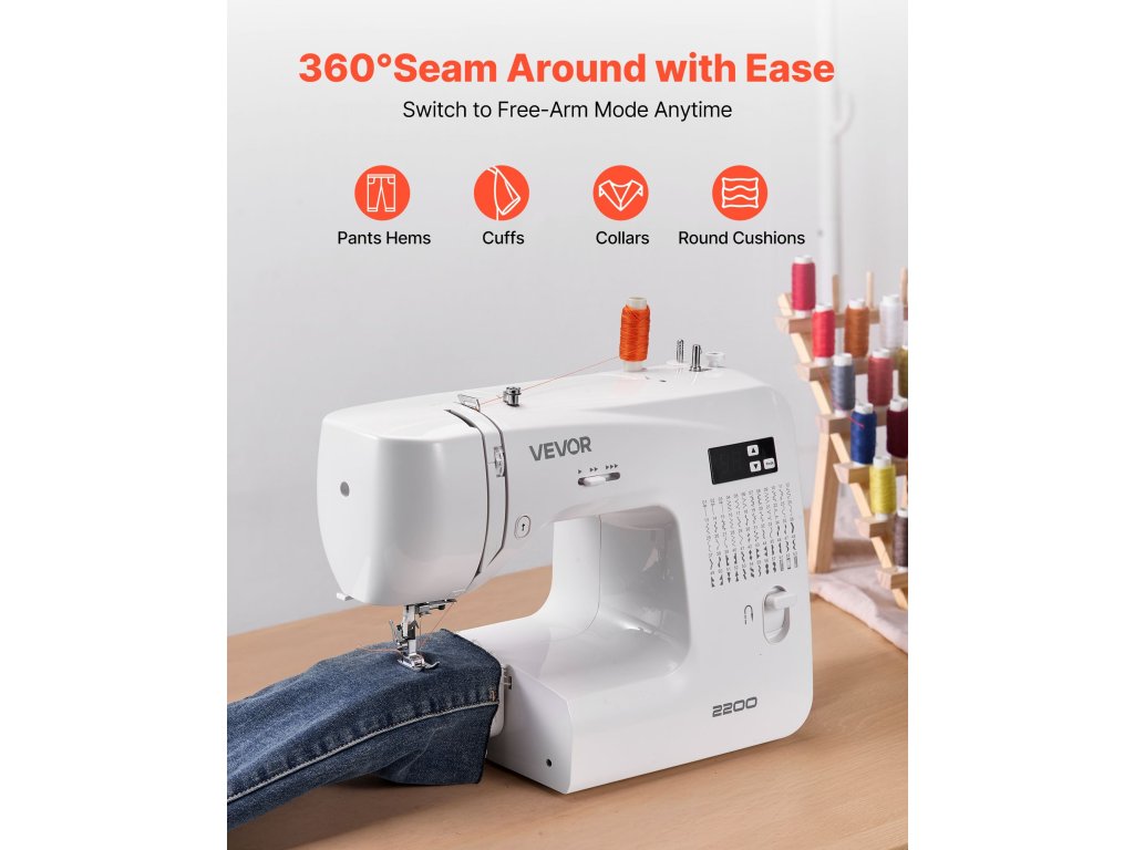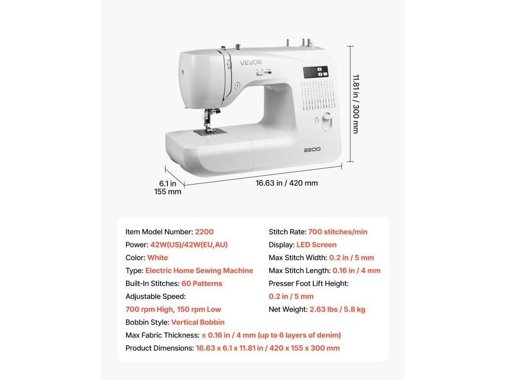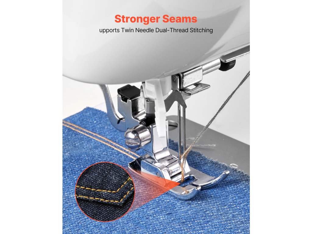 A tartós, teljesen fémből készült belső váznak köszönhetően ez a lábpedálos varrógép stabil marad nagy sebességű vagy nagy igénybevételű varrás közben. A nagy teljesítményű motorral együtt könnyedén és megbízhatóan kezeli az akár 0,16 hüvelyk vastagságú anyagokat, beleértve a vászon, a sifon és a sűrű szöveteket is.