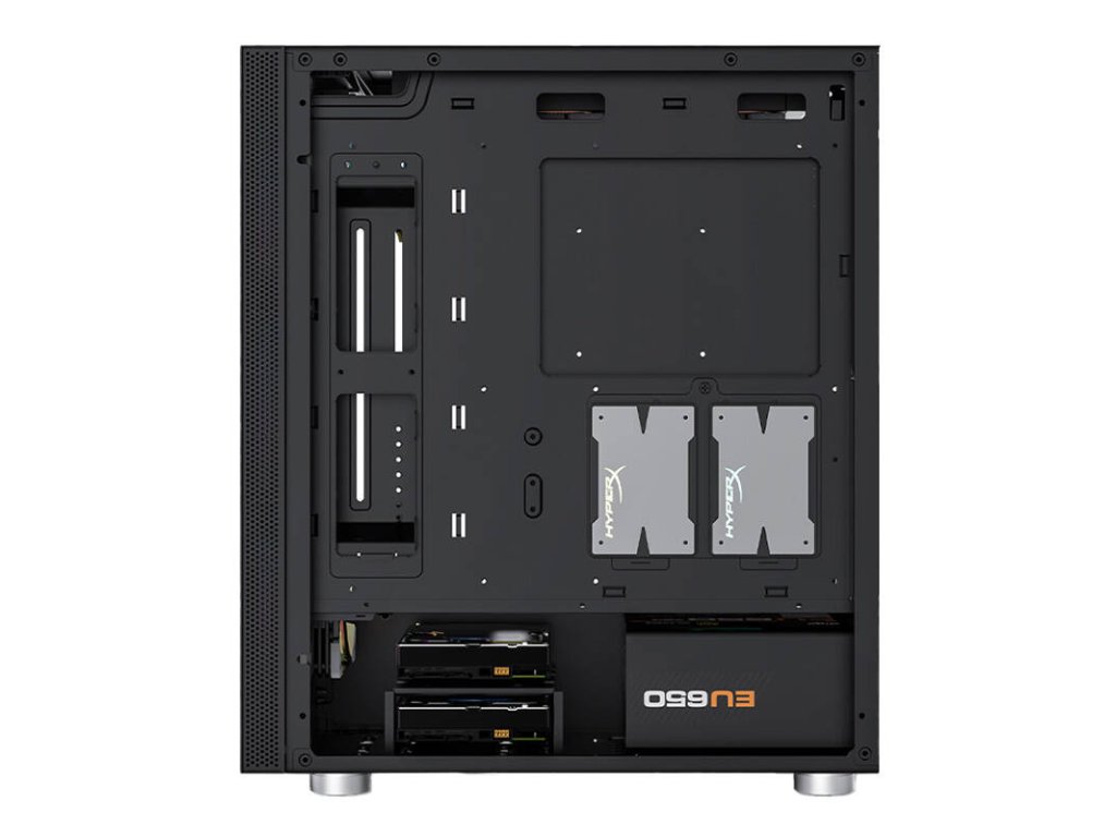 Az oldalsó panelek hüvelykujjas csavarokkal vannak rögzítve, így könnyen eltávolíthatók. Ez lehetővé teszi a gyors hozzáférést az alkatrészekhez, ha új alkatrészeket kell felszerelni vagy rutinszerűen tisztítani kell a belsejét. A bal oldalsó panelt edzett üveggel gazdagították, amely megvédi a ház belsejét a külső hatásoktól, és tökéletesen bemutatja a benne elhelyezett alkatrészeket, valamint RGB háttérvilágítással rendelkezik.