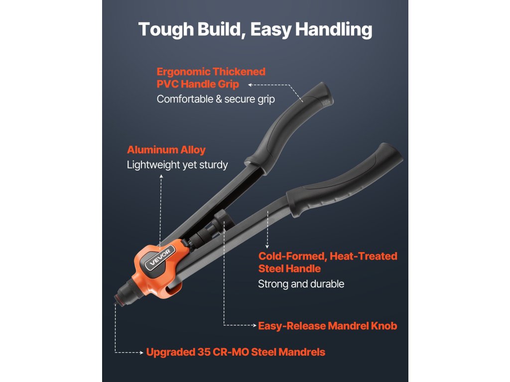 Átgondolt szegecselő szerszámkészlet mindenkinek, aki szeret építeni, javítani vagy alkotni - tökéletes születésnapra, ünnepekre vagy első háztartási szerszámkészletnek.
