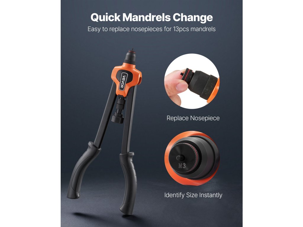 Ha eljön a csere ideje, a szétszerelés egyszerű és tiszta. Ezzel a szegecselő szerszámkészlettel másodpercek alatt cserélhet méreteket vagy távolíthatja el az elakadásokat, így a munka zökkenőmentesen folyik.