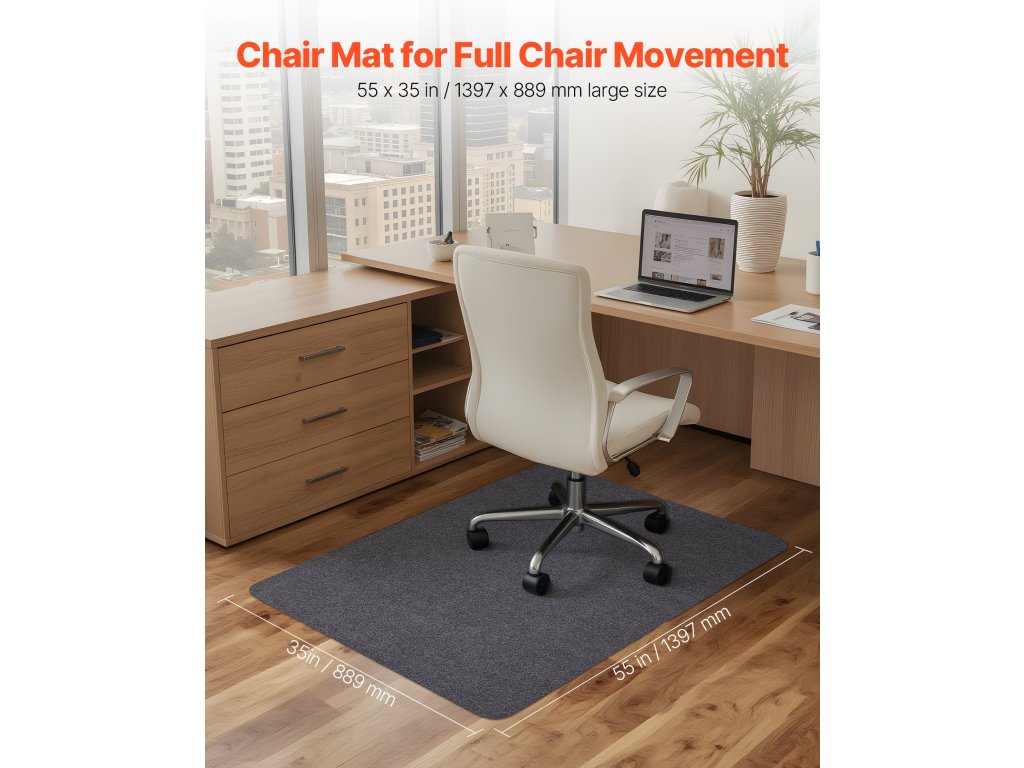 Ez a nagyméretű, téglalap alakú székszőnyeg jelentősen lefedi a szék mozgási területét. A csúszásmentes hátsó kialakítás kiváló tapadást biztosít és megakadályozza a csúszást, alkalmas kis és közepes méretű irodahelyiségekbe.