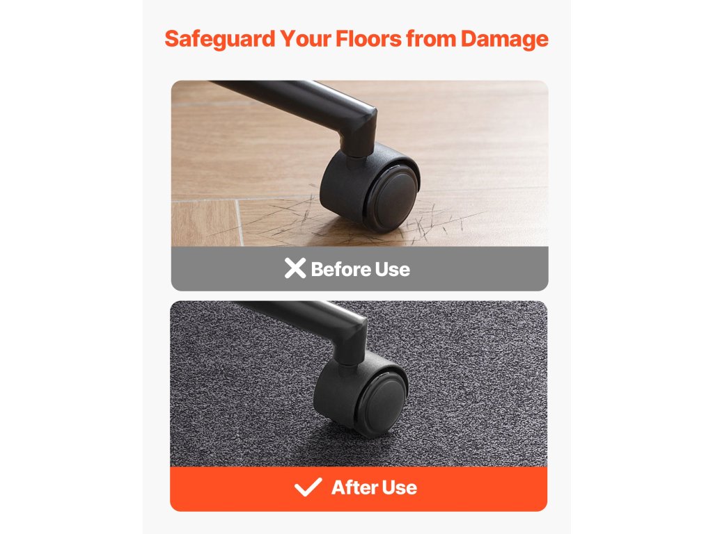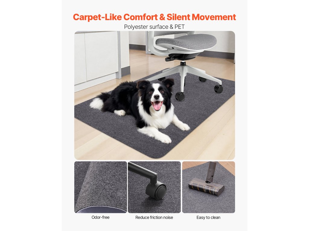 Ez a számítógépes szék alátét kiváló minőségű anyagból készült és kiömlésálló. Könnyen tisztítható kefével, porszívóval vagy robotporszívóval, így időt és energiát takaríthat meg.