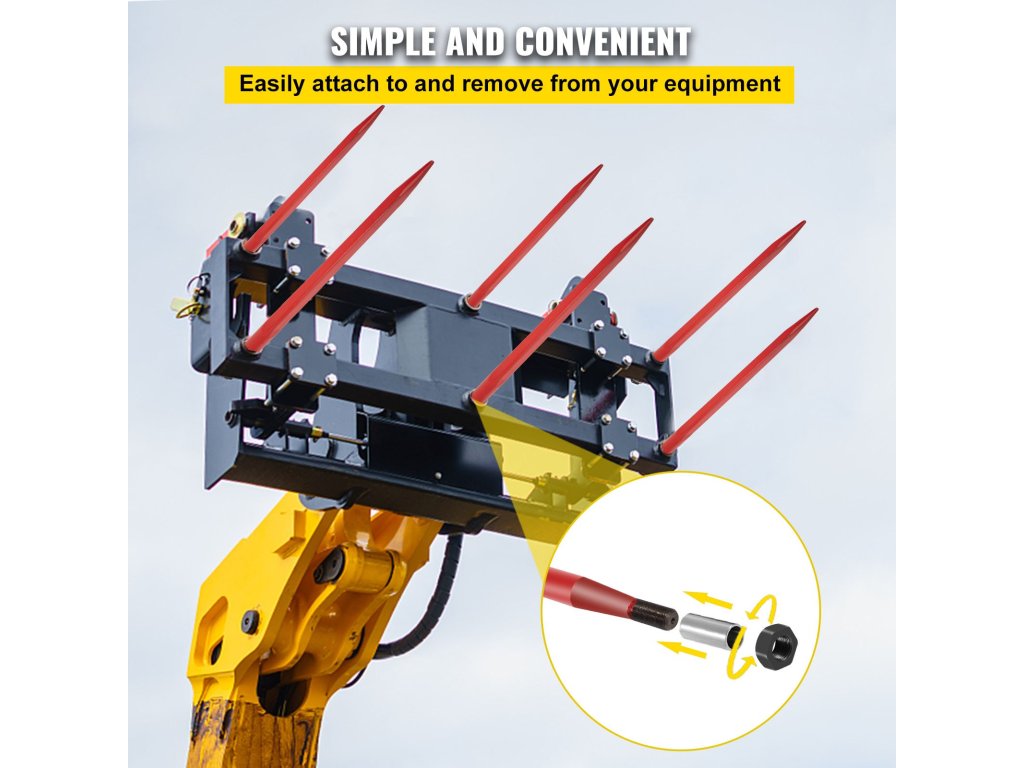 Más lándzsáktól eltérően a mi megerősített széna lándzsánk nem hajlik meg könnyen, és nagy, 3000 font teherbírású. Ez nagymértékben javítja a munka hatékonyságát.