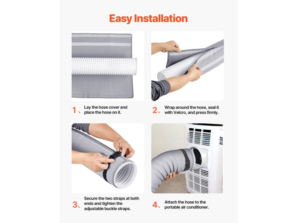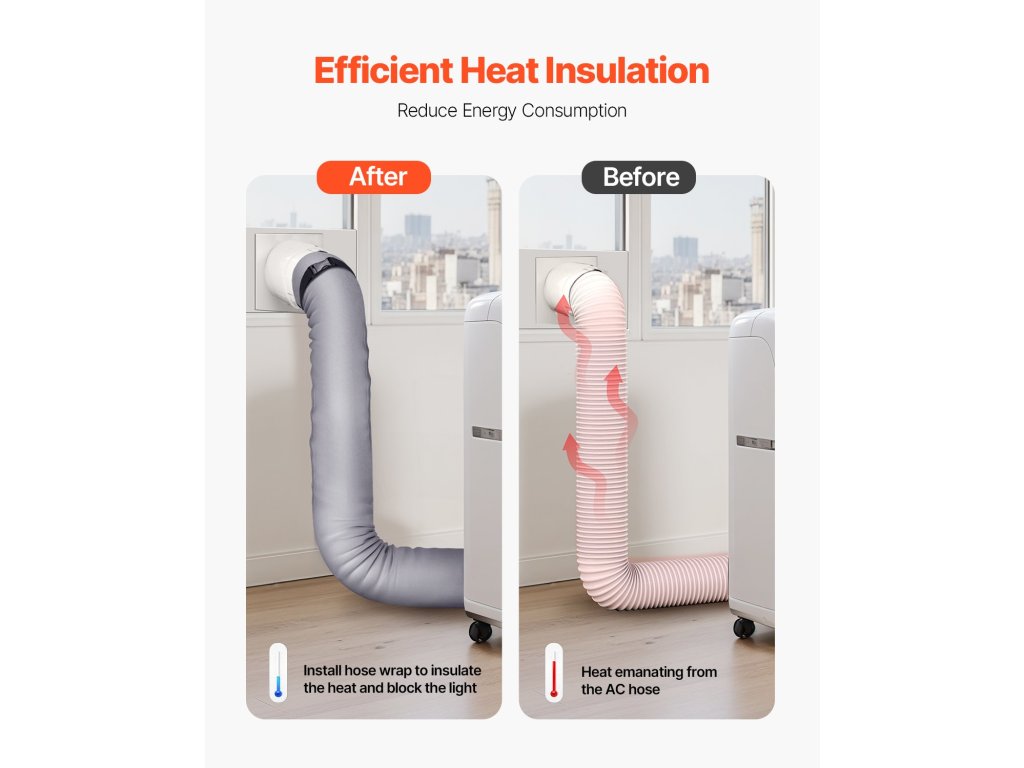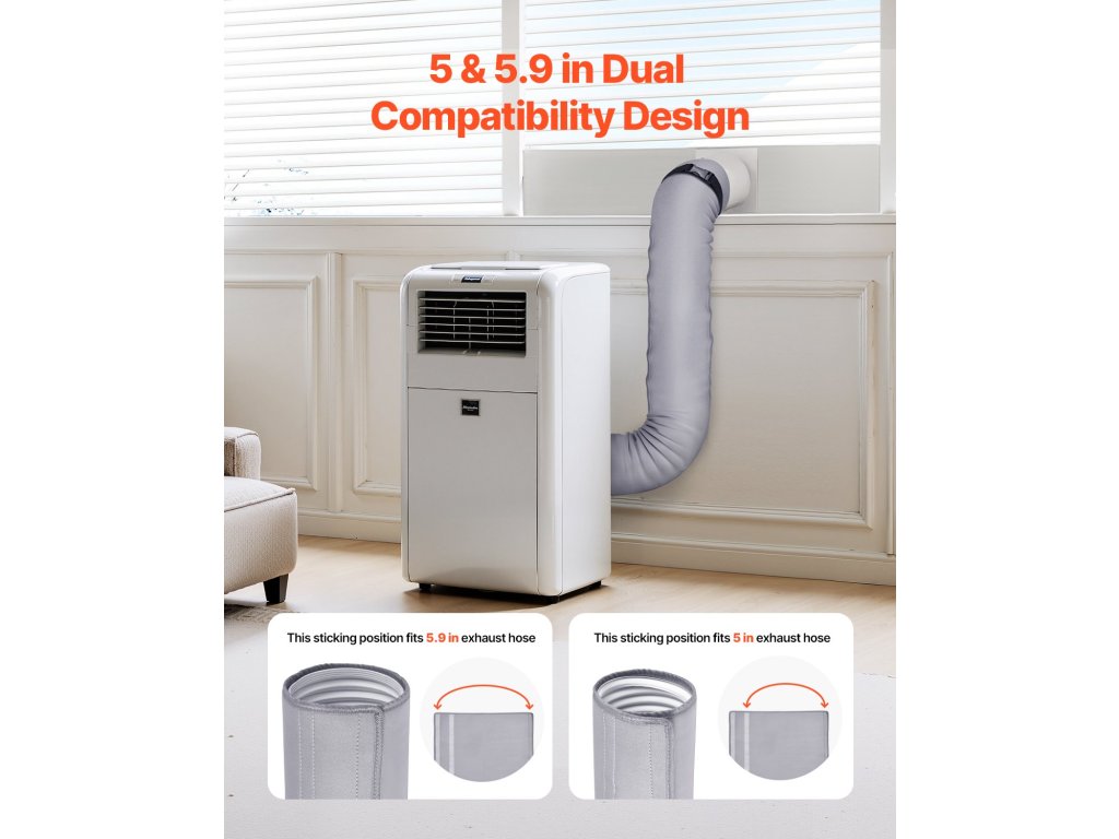 Ez a hordozható légkondicionáló tömlőszigetelő hüvely alkalmas 5" és 5,9" tömlőkhöz, alkalmazkodik a különböző méretű légkondicionáló tömlőkhöz, és biztonságos tömítést biztosít. Ideális otthoni és kereskedelmi légkondicionálókhoz egyaránt.