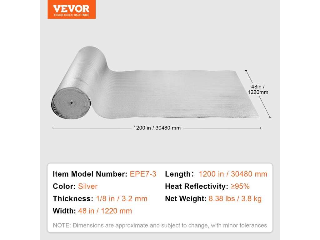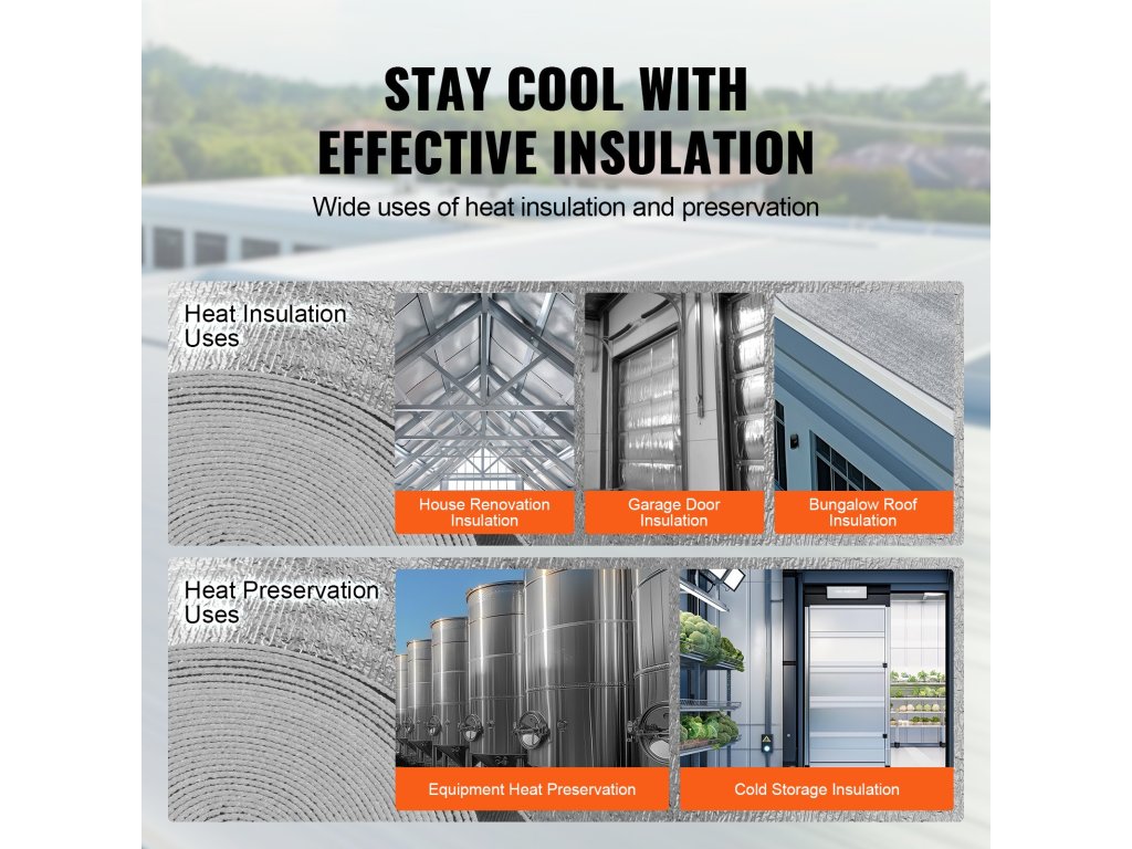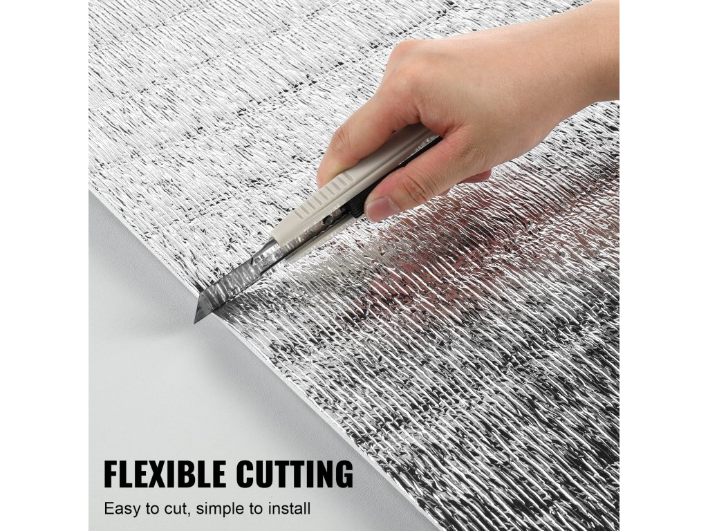 A VEVOR dupla fényvisszaverő szigetelő tekercs ≥ 95%-os magas fényvisszaverő képességgel rendelkezik, kettős fényvisszaverő alumíniumfóliát és nagy sűrűségű EPE habmagot használva. Nyáron hatékonyan blokkolja a napfényt, télen pedig megakadályozza a beltéri hőveszteséget, fenntartva a kellemes beltéri hőmérsékletet.