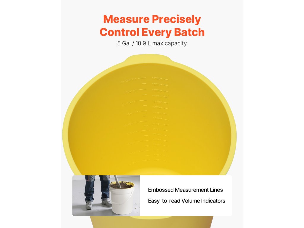 az 5 gallonos szilikon keverő vödör könnyen lehúzza a megszáradt anyagot. Miután megszilárdult, megfordítható és kiüríthető a maximális rugalmasság érdekében. Beépített fogantyúkkal és egyértelmű mérőjelekkel rendelkezik. Ideális keveréshez az építőiparban, különböző körülmények között.