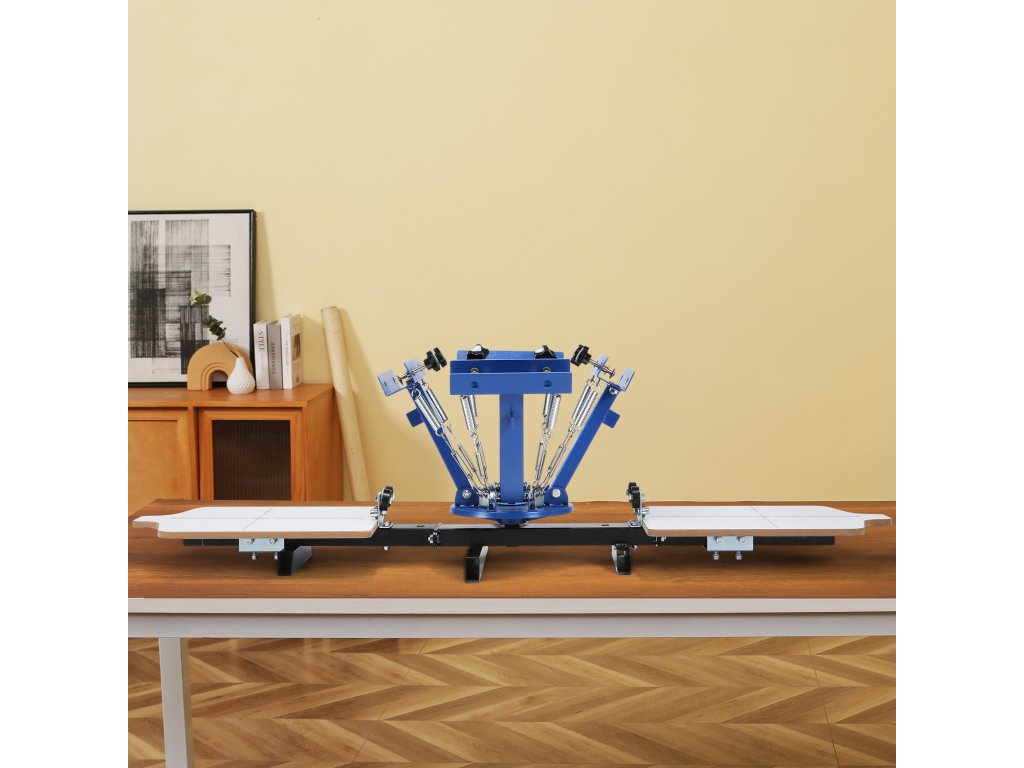 Szitanyomó gép 4 színnel, 2 állomással, 360°-ban forgatható, 54×45 cm-es raklap