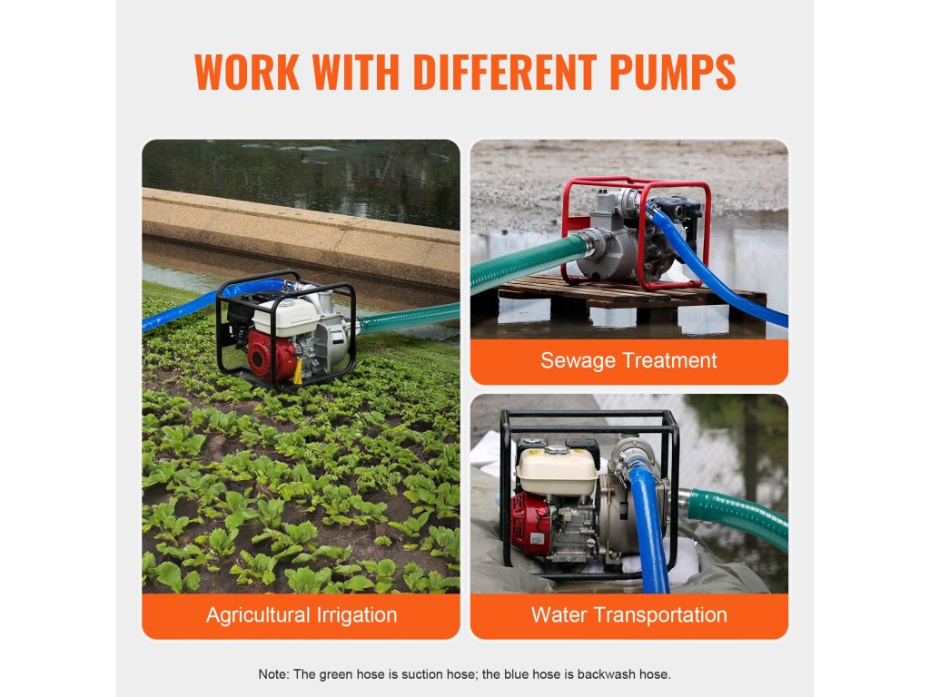 Tömlőkészletünk elengedhetetlen a motoros szivattyúkhoz, és 3 részből áll: egy kemény szívótömlő (zöld), egy puha visszamosótömlő (kék) és tartozékok. A 2 in x 50 ft-os szívóvezetékeken használt tömlőszettünk tartós, lágy korrózió/rozsdaállósággal és erős tömítő tulajdonságokkal rendelkezik, jó a különböző szivattyúkhoz a legkülönbözőbb helyszíneken.