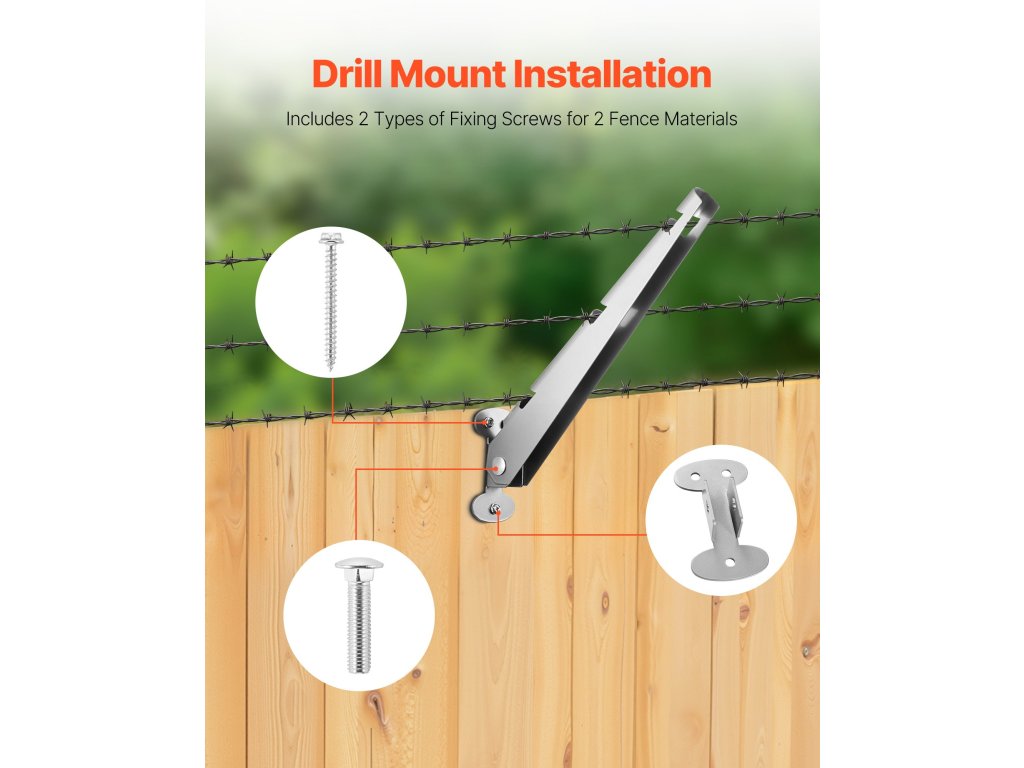 A kerítésmagasság-hosszabbító hatszögletű csavarokat, anyákat, fúrófejet, foglalatot és villáskulcsot tartalmaz - mindent, ami az azonnali beállításhoz szükséges. Egyszerűen igazítsa a kerítéshez, fúrja be az előre kijelölt lyukakba, és húzza meg.