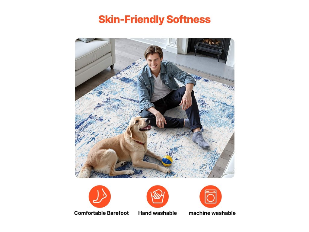 Szőnyeg 1,5×2,7 m, mosható, csúszásmentes, gyerekeknek és állatoknak, kék
