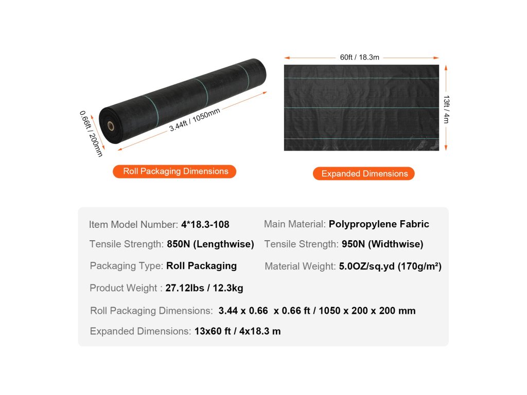 Mondjon búcsút a makacs gyomoknak! A VEVOR 13x60 ft, 5OZ nagy sűrűségű szőtt gátszövet kivételes áteresztőképességgel és légáteresztő képességgel büszkélkedhet, miközben kiváló szakadás-, korrózió- és erózióállóságot biztosít. Javítja a talaj egészségét a gyomnövények növekedésének megfékezésével, és magabiztosan védi a kertet.