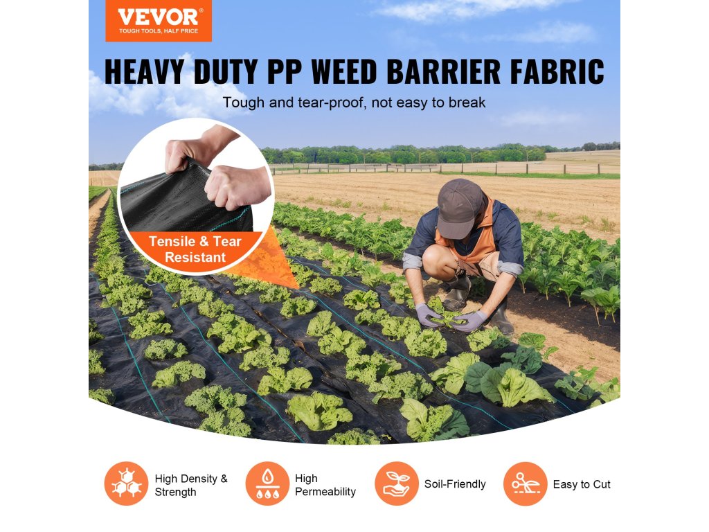 Mondjon búcsút a makacs gyomoknak! A VEVOR 6x100 ft, 3,2OZ nagy sűrűségű szőtt gátszövet kivételes áteresztőképességgel és légáteresztő képességgel büszkélkedhet, miközben kiváló szakadás-, korrózió- és erózióállóságot biztosít. Javítja a talaj egészségét a gyomnövények növekedésének megfékezésével, és magabiztosan védi a kertet.