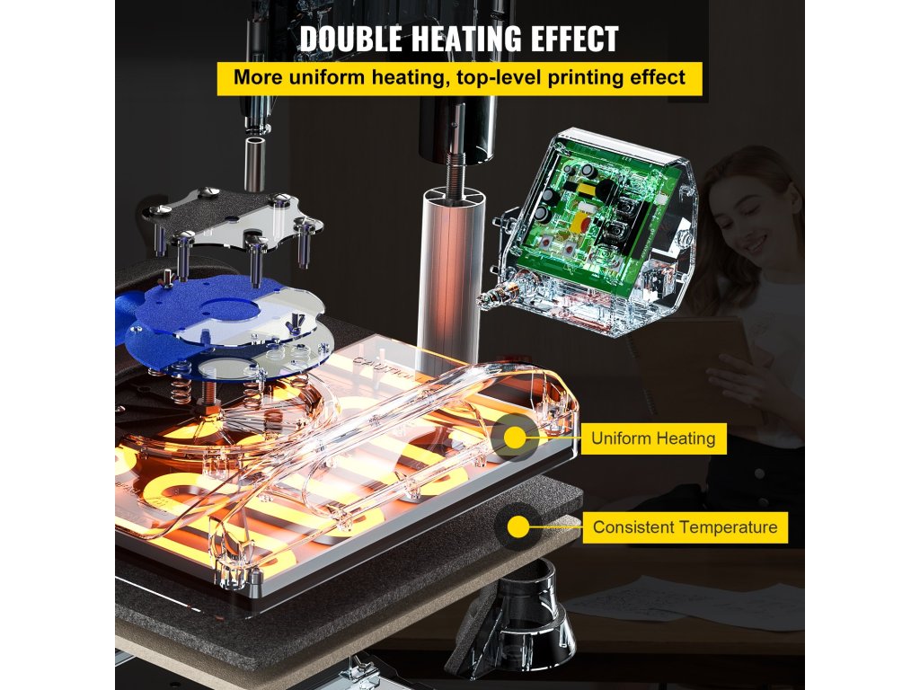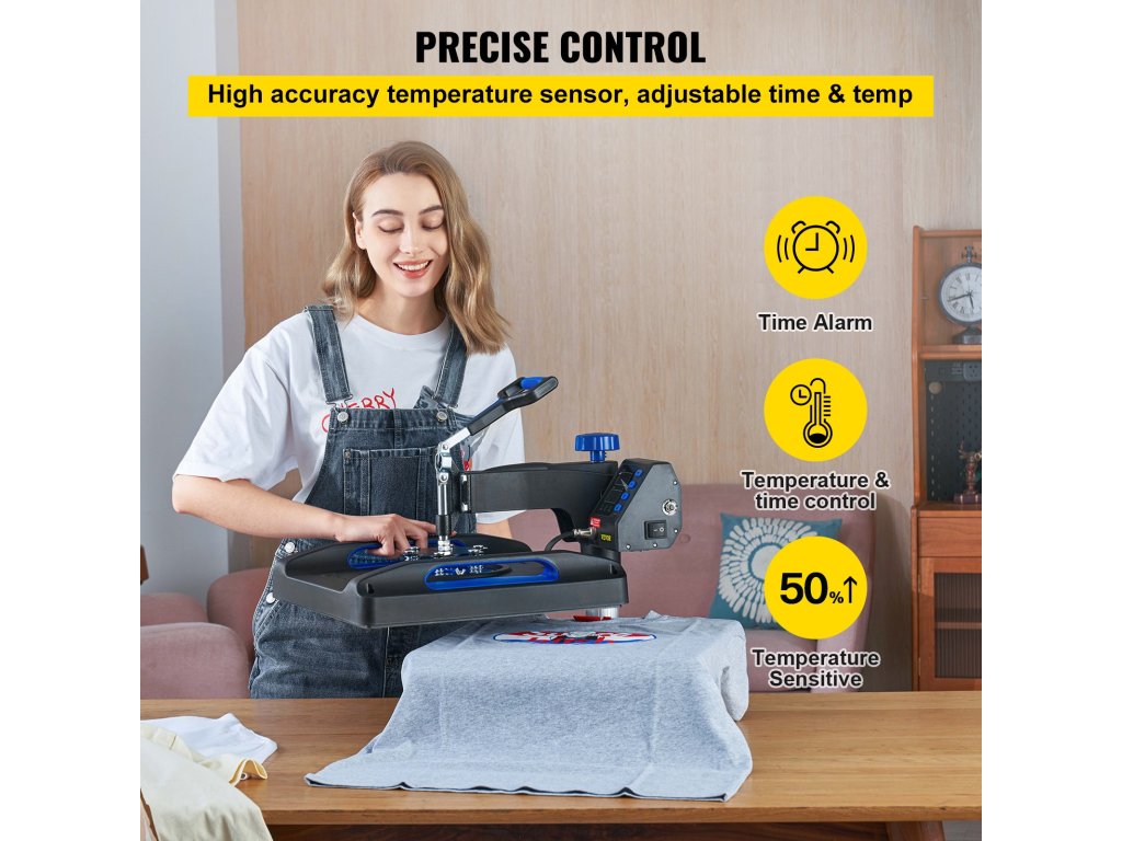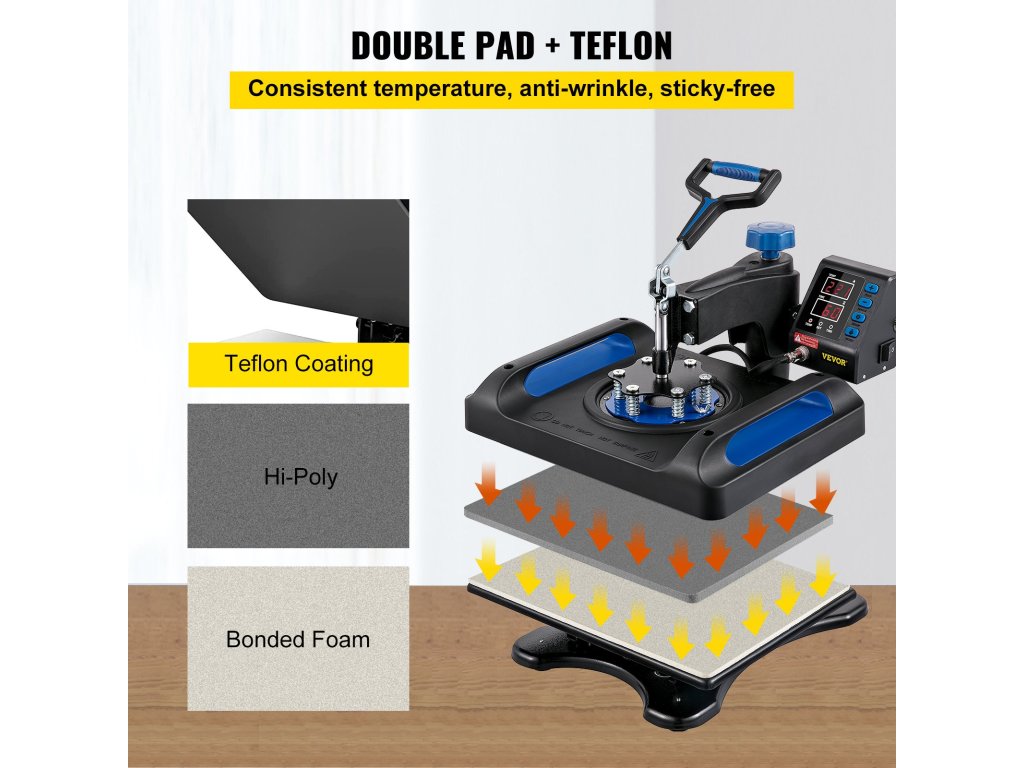 A tapadásmentes teflonbevonatú hőpréslemez további védelmet nyújt a pólóknak azáltal, hogy megakadályozza a peremek görbülését.