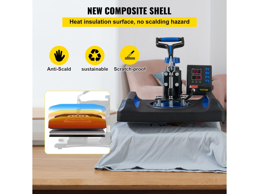 Szublimációs pólóprés 30,48 × 38,1 cm, digitális, 360°-ban forgatható, táskákhoz