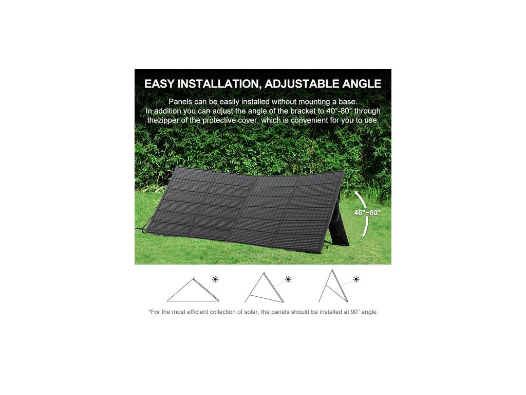 Állítható szögű tartóval felszerelve lehetővé teszi a napelem szabad beállítását a napsugárzás és az energiafelvétel optimalizálása érdekében.
