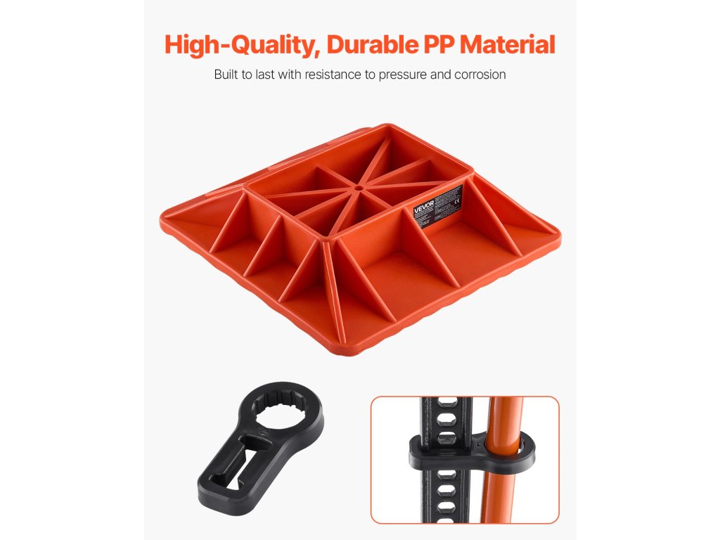 Nagy szilárdságú PP (polipropilén) anyagból készült, amely mindössze 4 font/1,8 kg súlyú, mégis ellenáll a 7000 font/3 175,2 kg-os extrém terhelésnek. A terepjáró emelő talpa korrózió- és ütésálló, és még hosszan tartó használat mellett sem deformálódik.