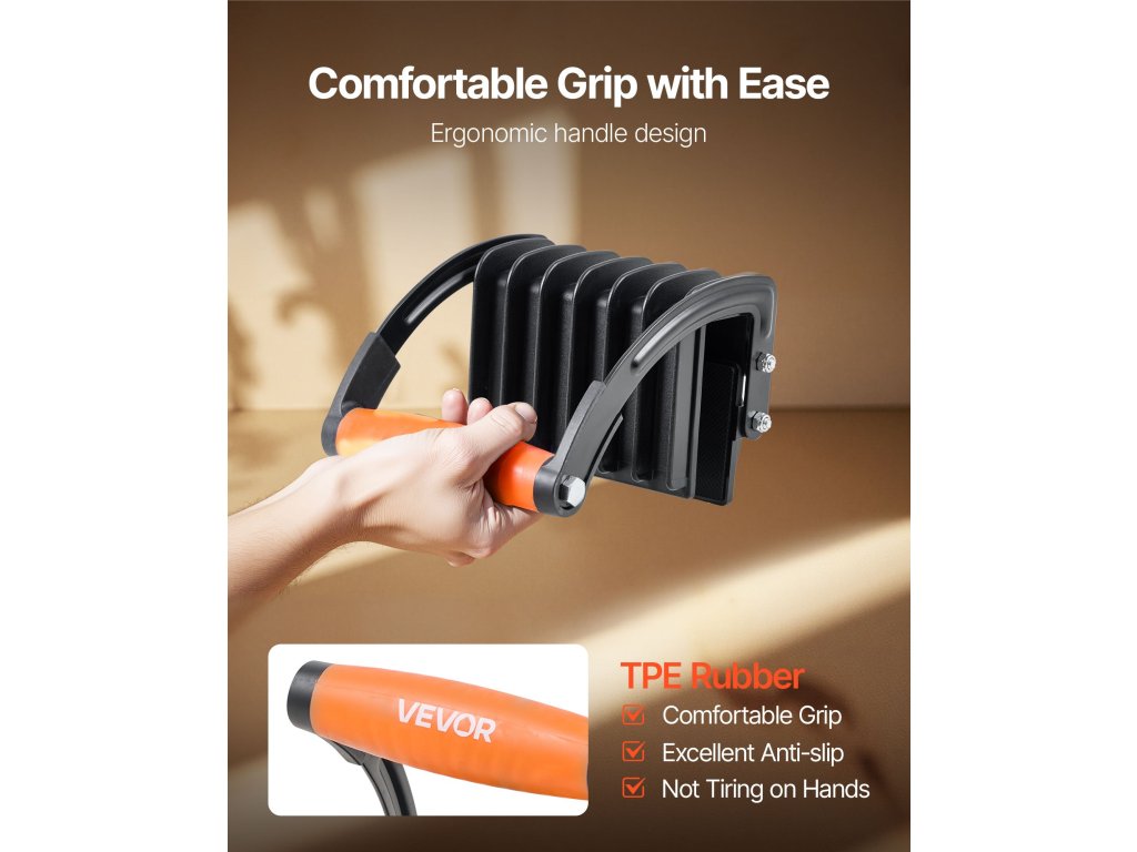 Az NBR gumibetétekkel ellátott rétegelt lemez hordozóeszköz biztonságosan a helyén tartja a deszkákat, megakadályozza a csúszást, és megvédi a felületeket a karcolásoktól. Hordozza magabiztosan!