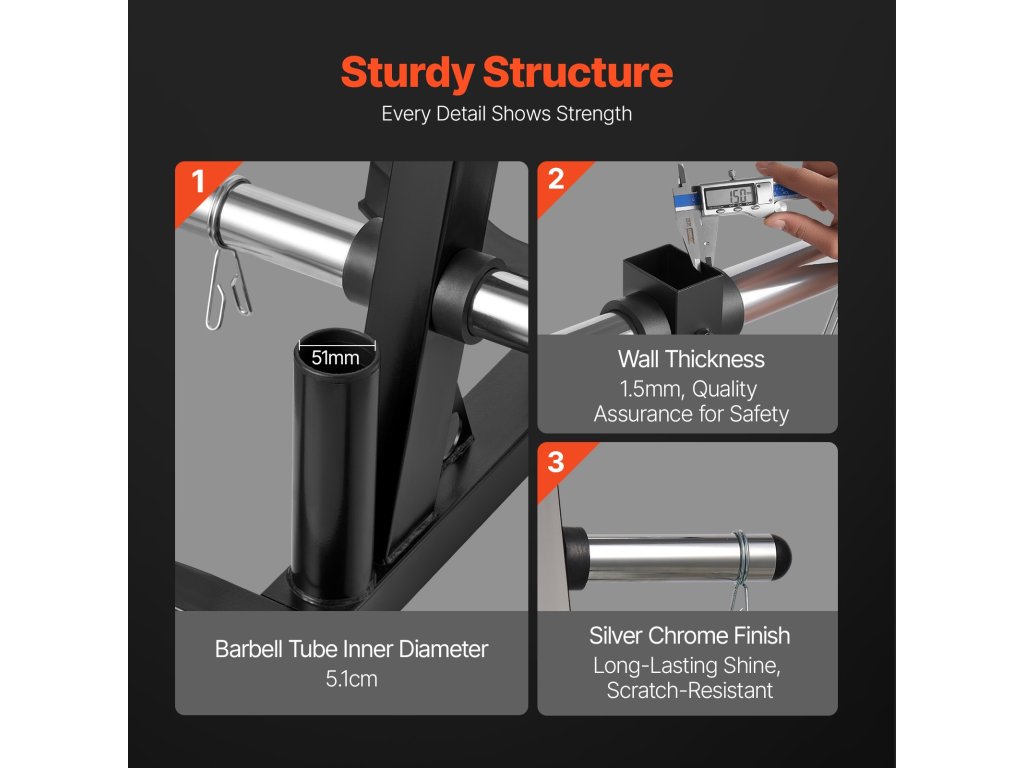 A teljes hegesztési technológia alkalmazásának köszönhetően ez az otthoni edzőtermi tárolóállvány varratmentes illesztésekkel rendelkezik, amelyek jelentősen növelik a szerkezet általános szilárdságát és stabilitását. A kiváló minőségű anyagok garantálják az állvány tartósságát.