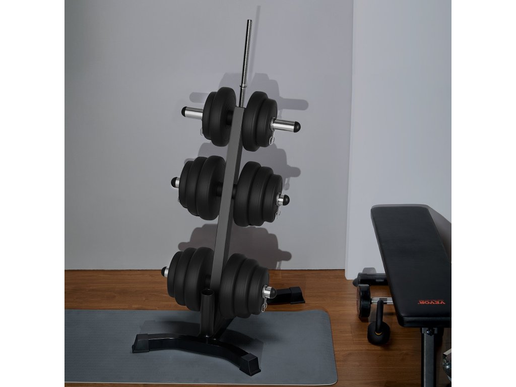 A stabil kialakítás minimalizálja az imbolygást, miközben könnyen befogadja mind a szabványos, mind a nagyobb terhelési lemezeket. Rendezett tárolást biztosít a különböző típusú lemezek számára, hogy megfeleljen a különböző edzési igényeknek.
