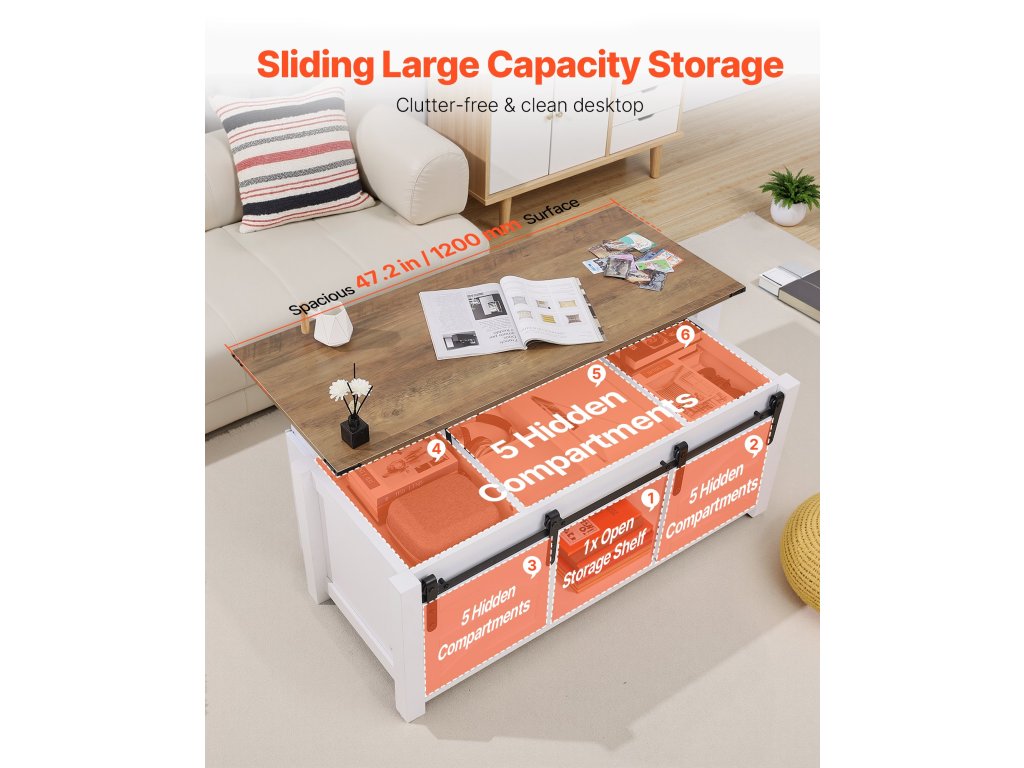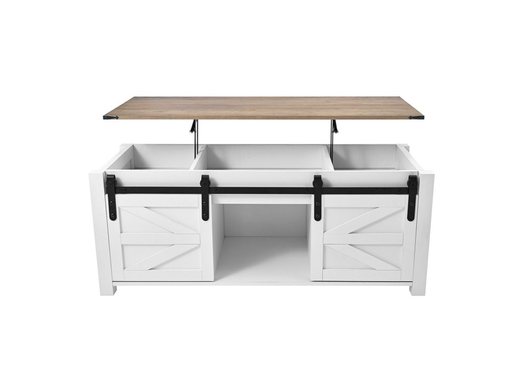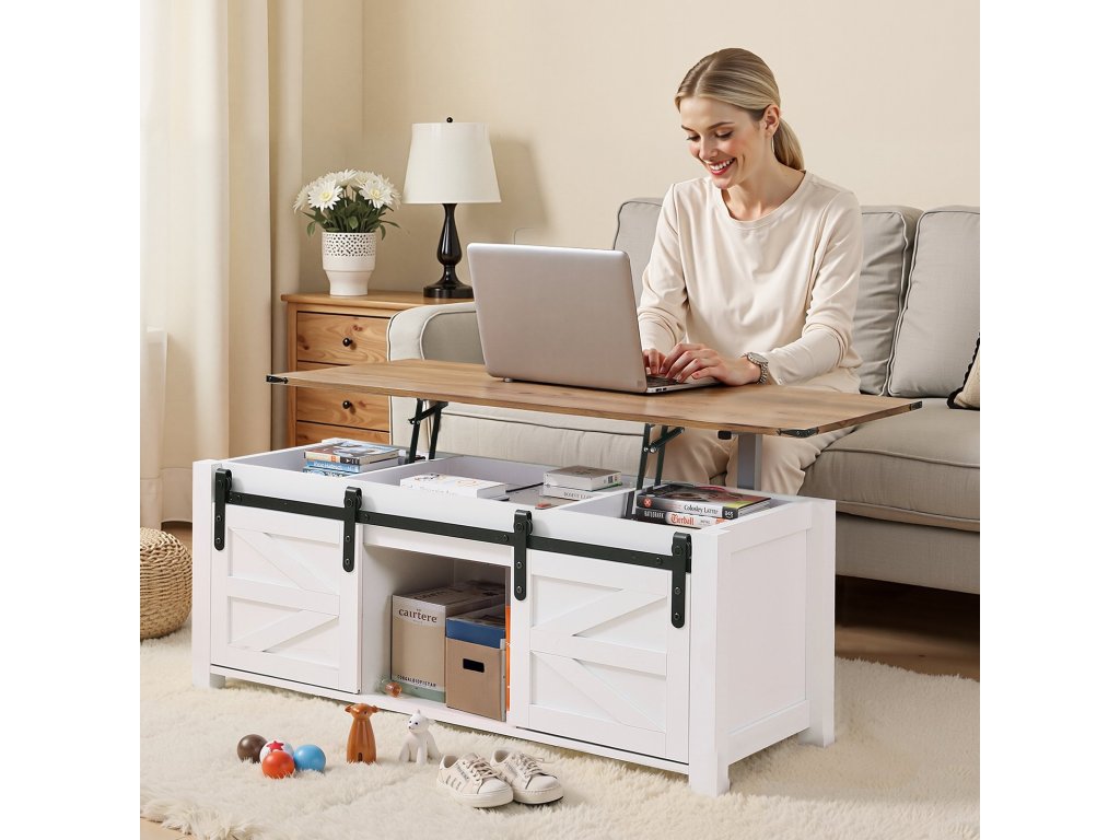 Könnyen válthat a szabadidő, a munka és a tárolás között. Használja hagyományos dohányzóasztalként vagy tárolószekrényként, vagy emelje fel a tetejét, hogy tágas munkaállomássá alakítsa két személy számára - tökéletes a nappaliban vagy az otthoni irodában való közös használatra.