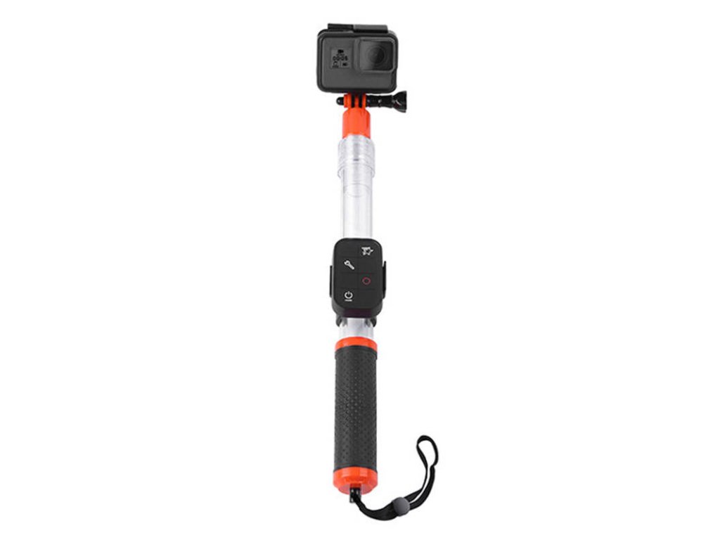 Örökítse meg a vízi világ szépségét. A Telesin GP-MNP-T01 úszós szelfibot úszik a vízen, és élénk színű jellemzői miatt könnyen észrevehető. Hossza 36 és 62 cm között állítható. A termék rendelkezik egy levehető Wi-Fi távirányítótartóval is (a távirányító nem tartozék), valamint egy speciális pánttal, amellyel a csuklójára rögzítheti. A tartozék a legtöbb sportkamerával kompatibilis.