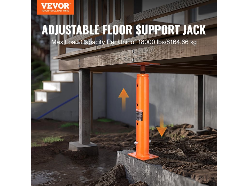 Ez a padlóemelő ideális a kulcsfontosságú területek, például gerendák, teraszok és szerkezetek ideiglenes vagy kiegészítő alátámasztására.