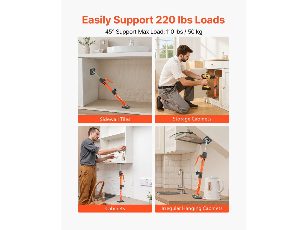 Ez a 2 darabos szekrénytartó rúdkészlet hatékony teherbírást biztosít az építkezéseken, raktárakban és otthoni projektekben. A 220 font teherbírású, állítható magasságú és biztonságos reteszelésű kialakítással ideális szekrények, gipszkarton és egyéb tárgyak emelésére vagy tartására.
